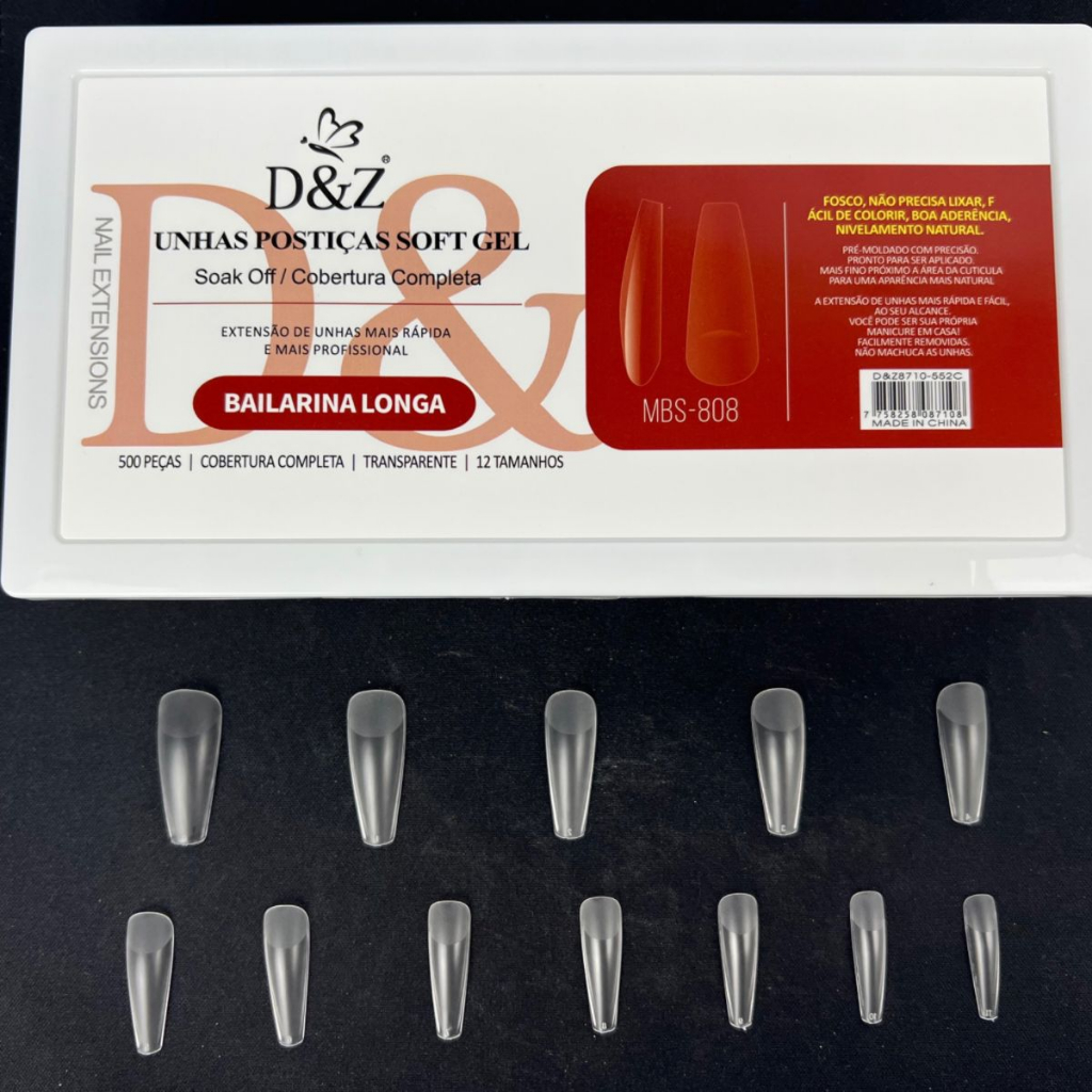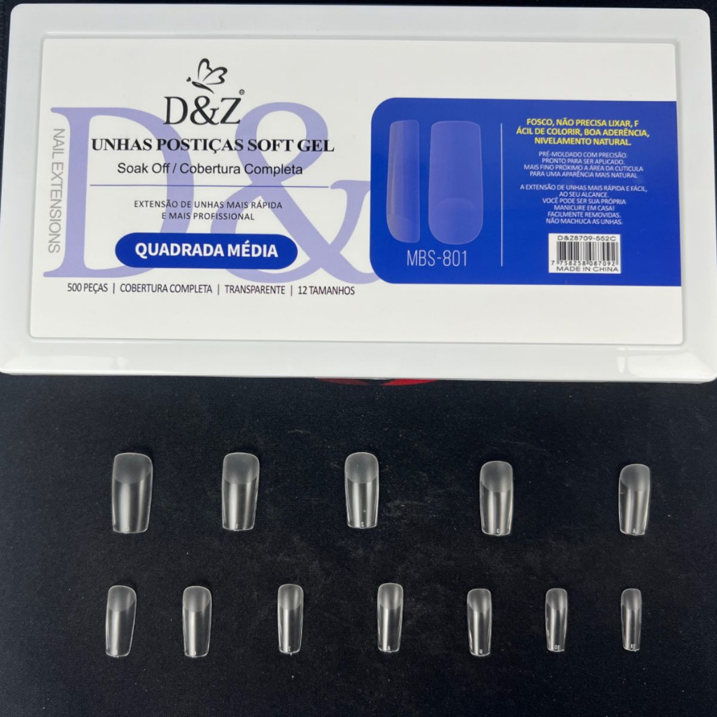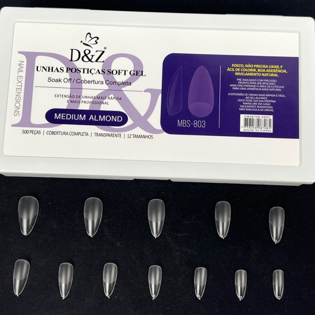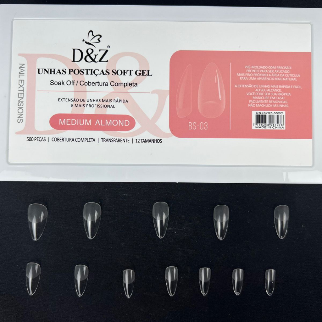 Unhas postiças Soft Gel D&Z com 500 unidades Bailaria Almond e Quadrada