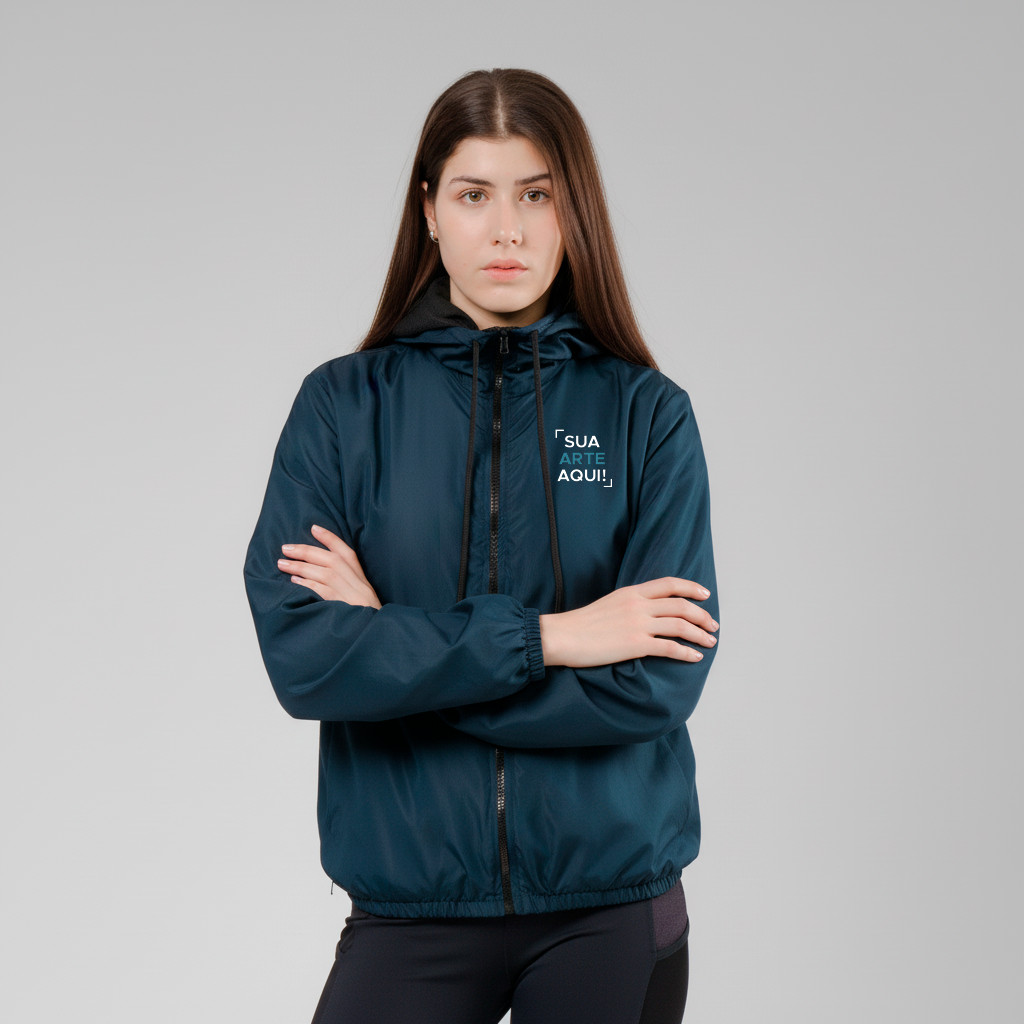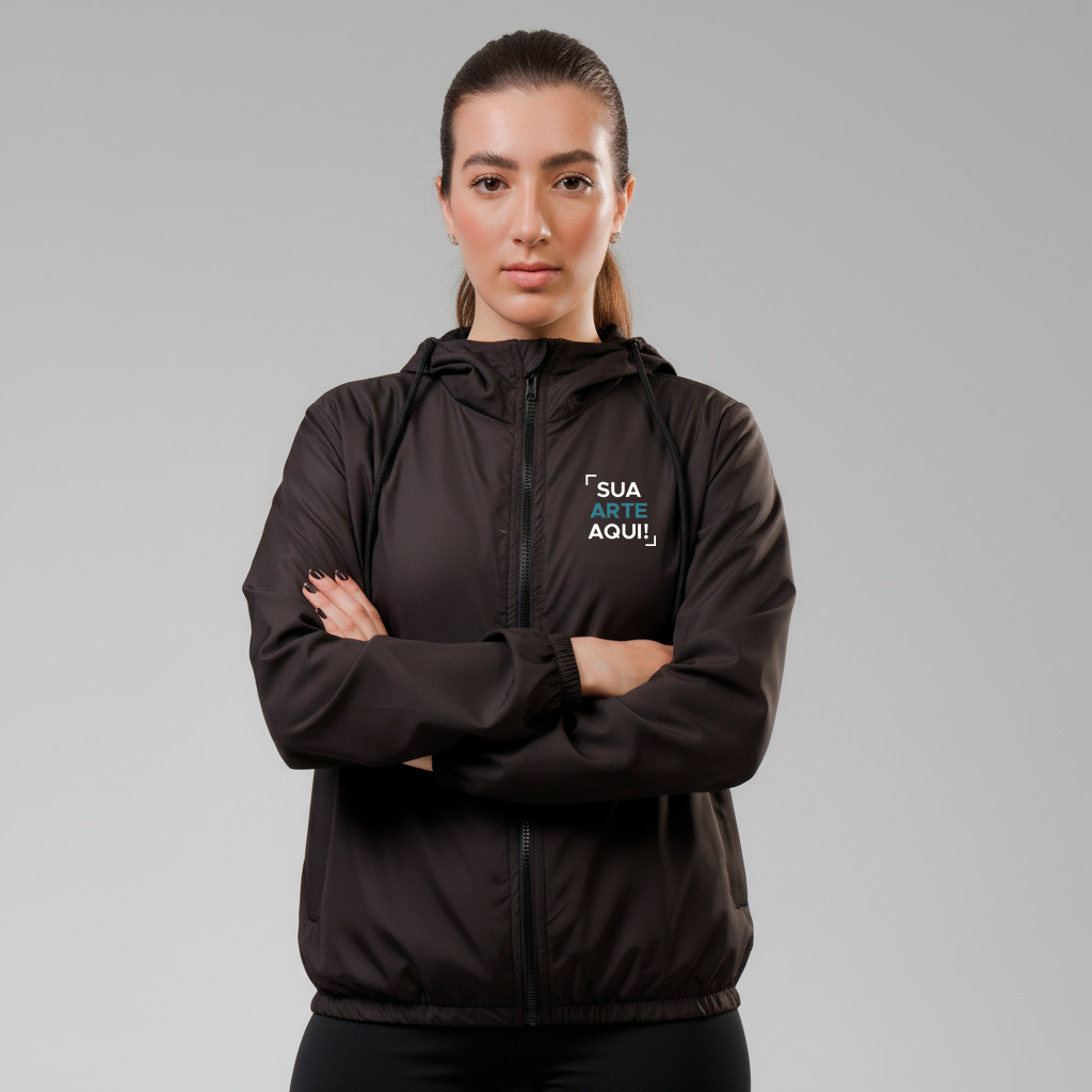 Jaqueta Corta Vento Impermeável Capuz Personalizada Equipe Feminina