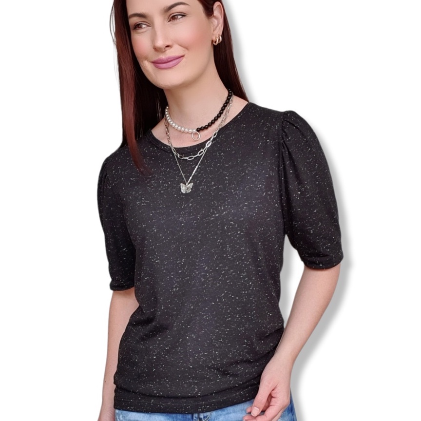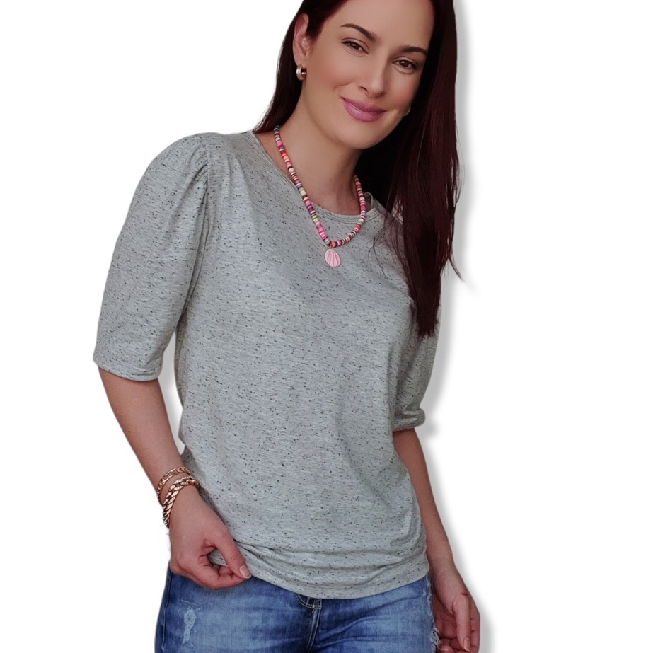 Blusinha Princesa Malha Botonê Manga Bufante Pregas Moda Feminina Tendência Verão