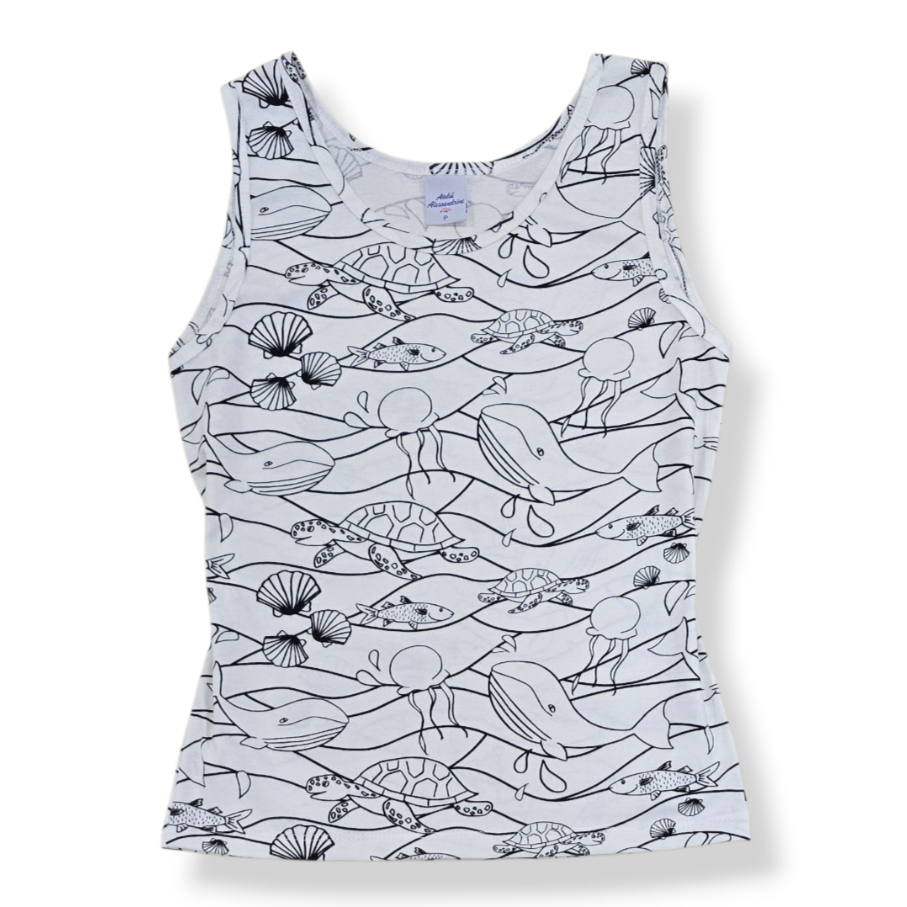 Regata Moda Feminina Básica Estampada Malha Soltinha Corpo Alça Larga