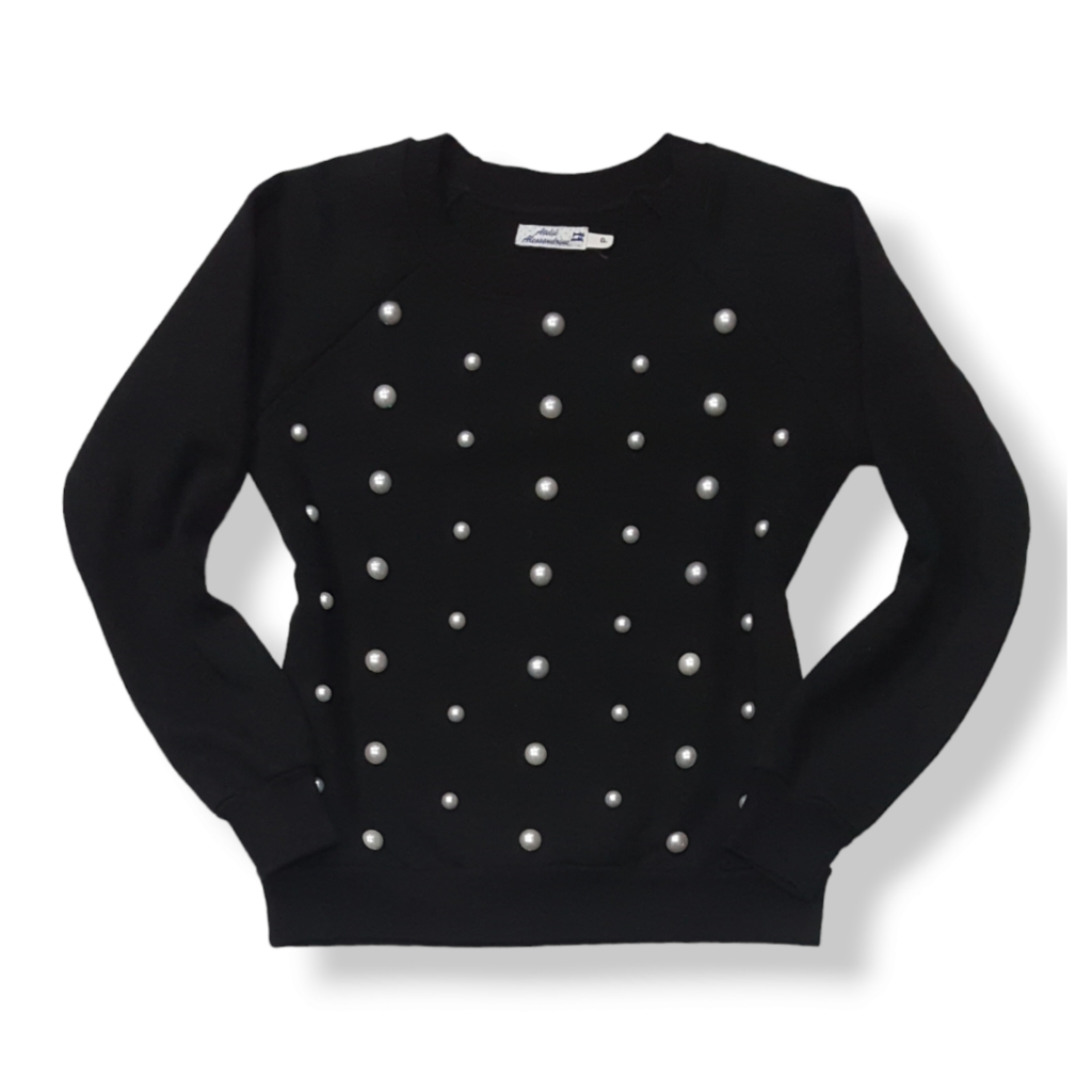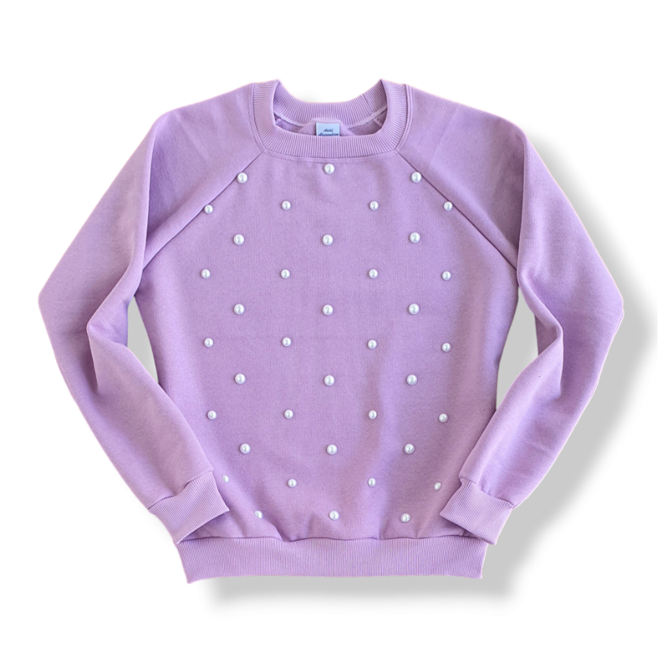 Blusa Moletom Bordado Pérola Moda Inverno Feminino Flanelado Grosso Peluciado Dentro