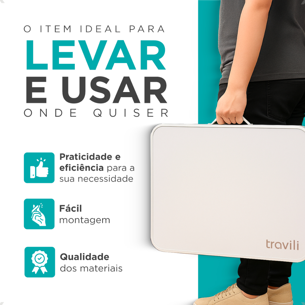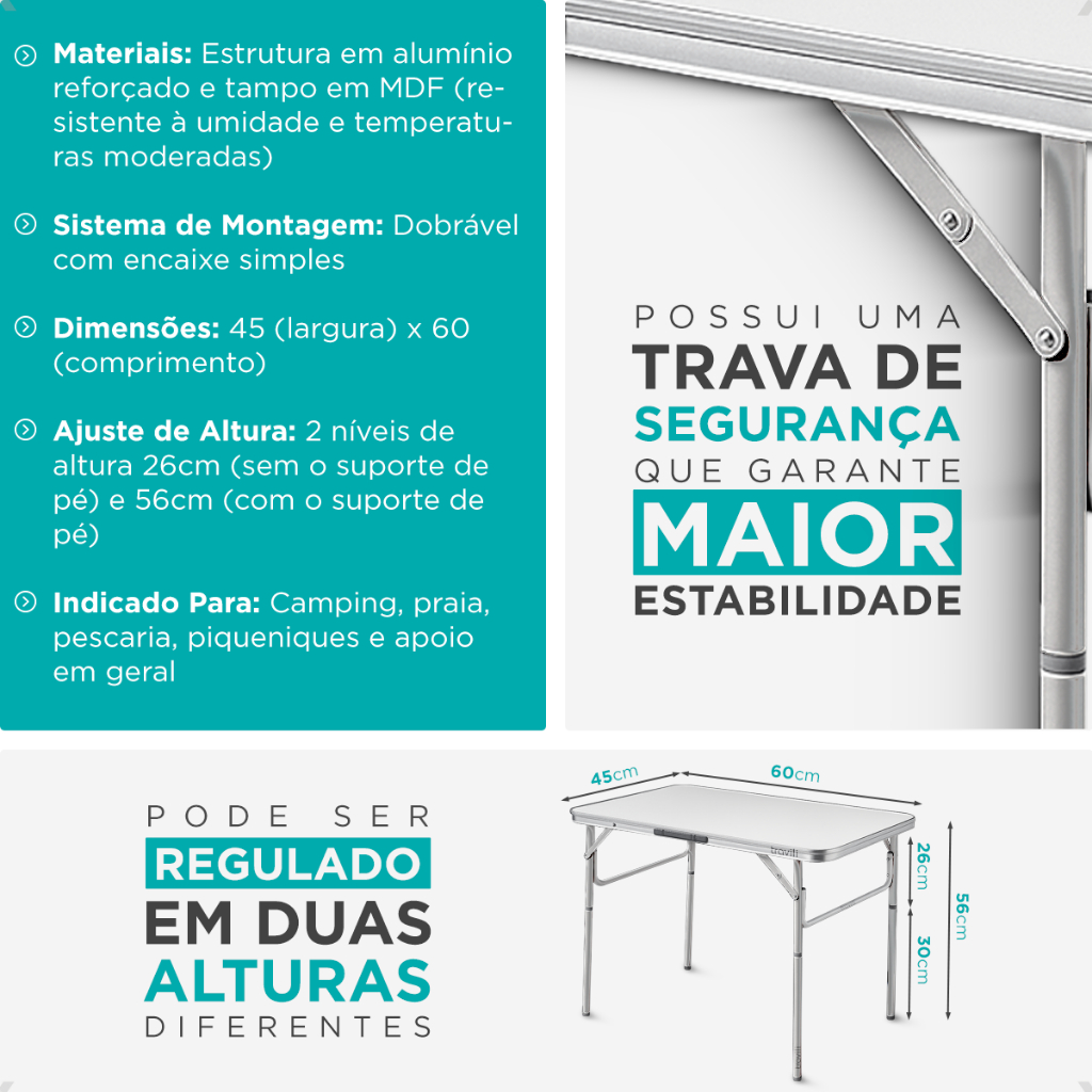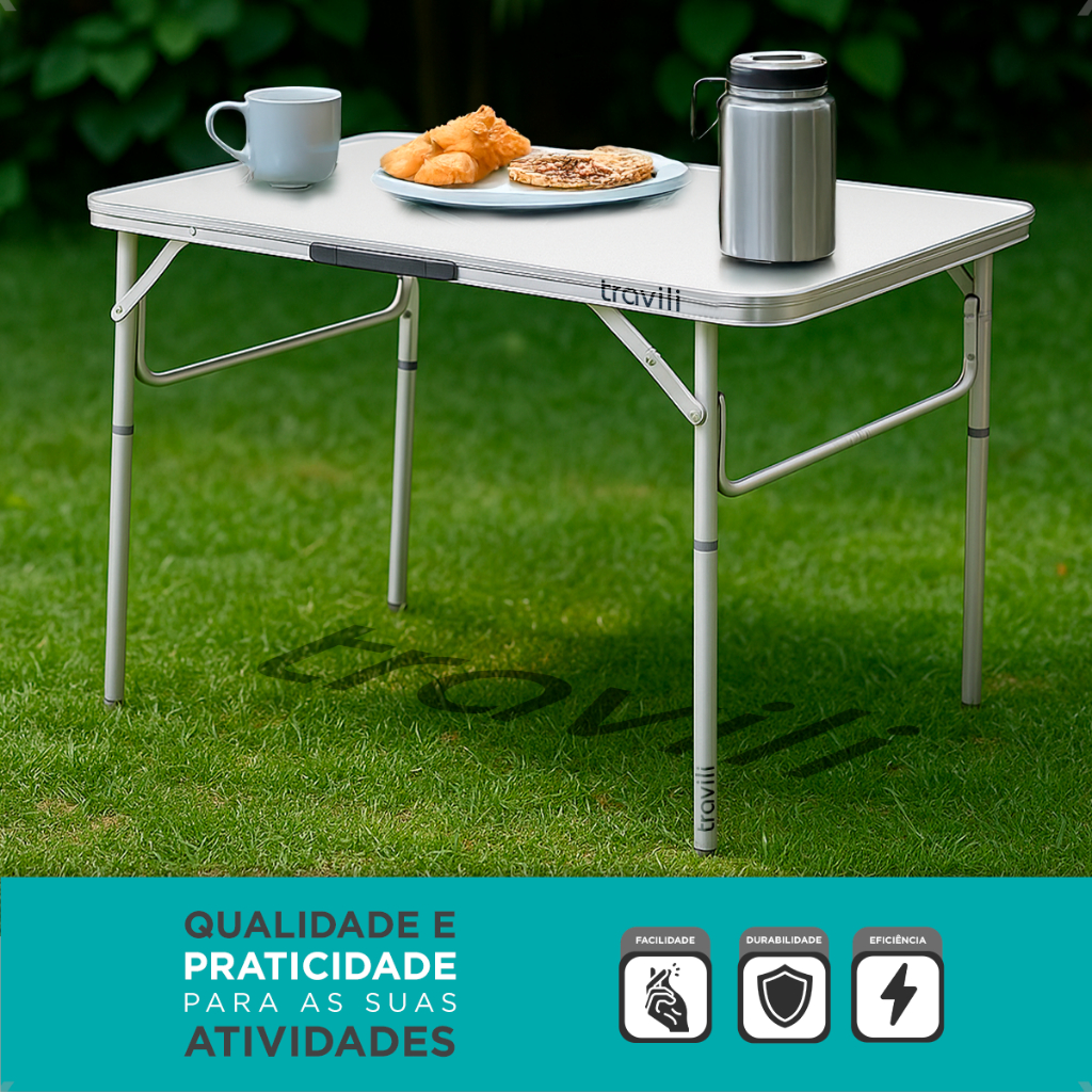 Mesa Portátil Maleta Alumínio 60x45cm Pés Dobráveis Com Alça Para Camping Churrasco