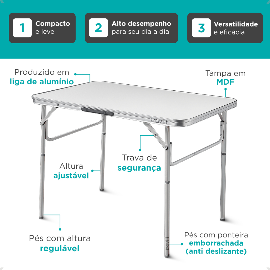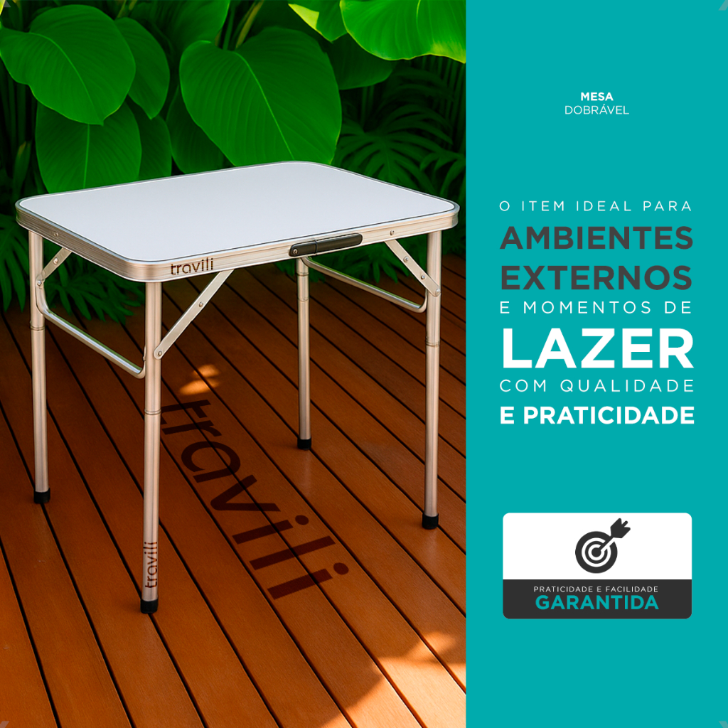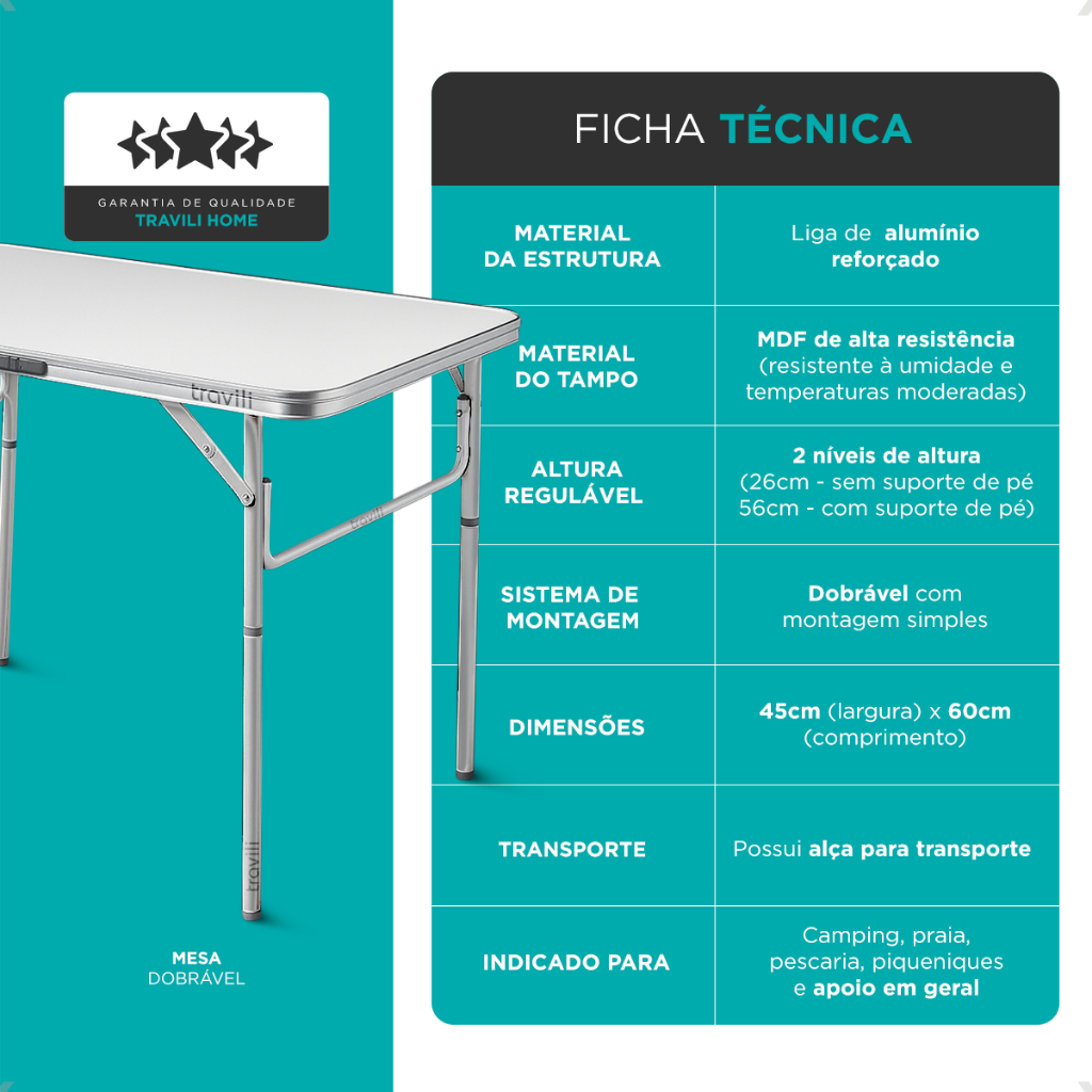 Mesa Portátil Maleta Alumínio 60x45cm Pés Dobráveis Com Alça Para Camping Churrasco