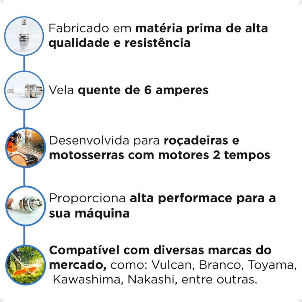 Vela de Ignição Universal Para Roçadeira e Motosserra Motor 2 Tempos