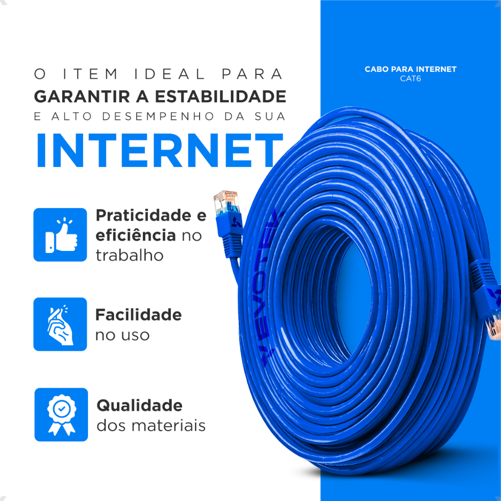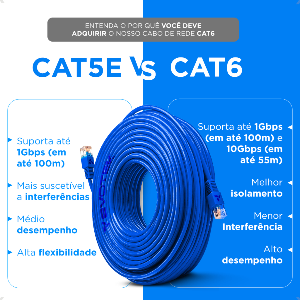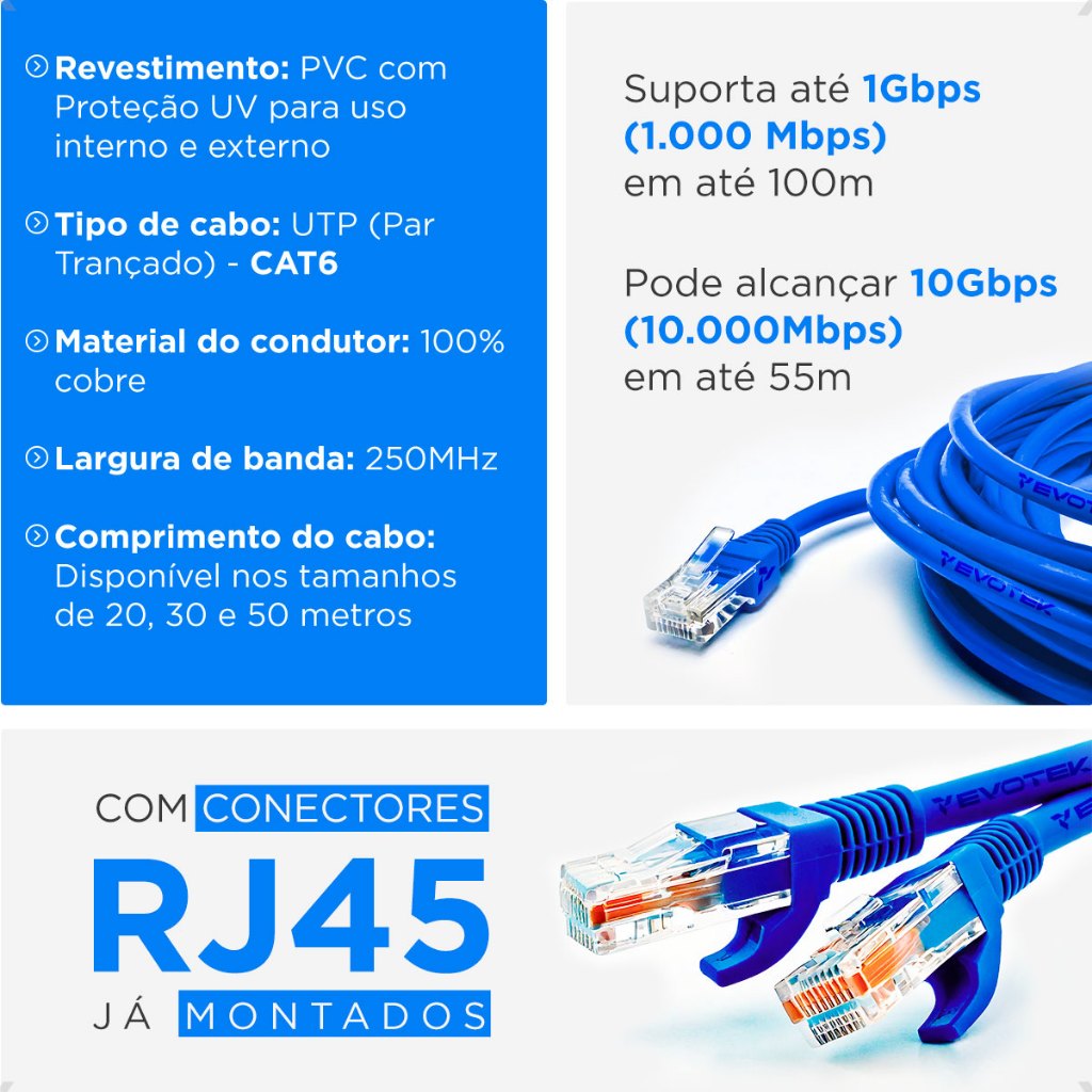 Cabo de Rede CAT6 RJ45 Alta Velocidade para Conexão de Computadores e Redes