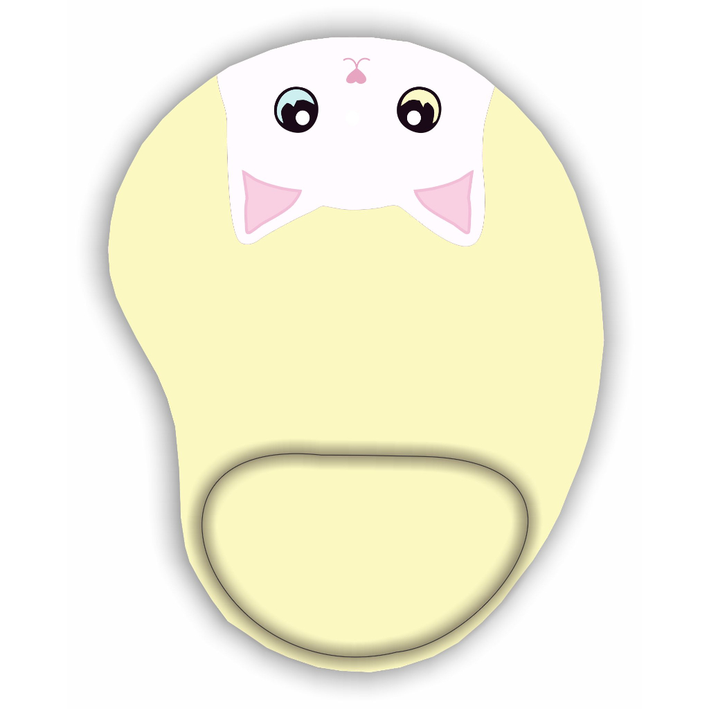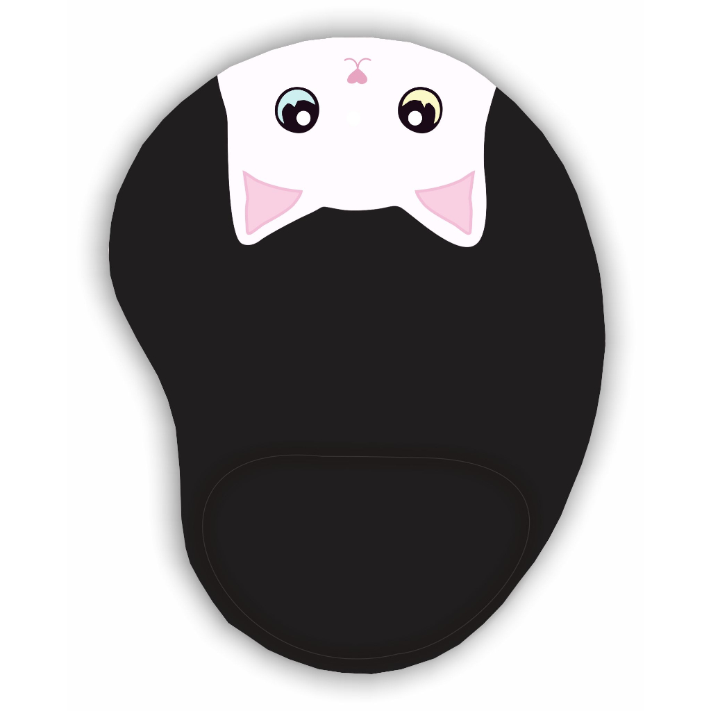 Mouse Pad com apoio Ergonômico Gato Branco Olhos Coloridos