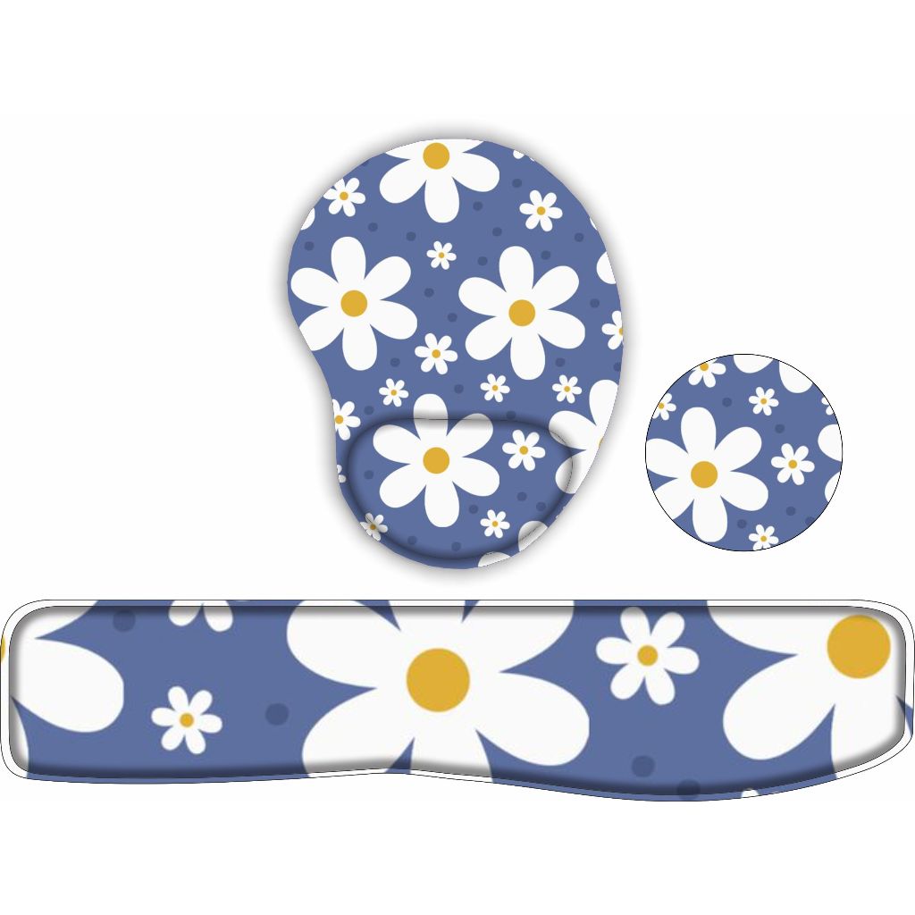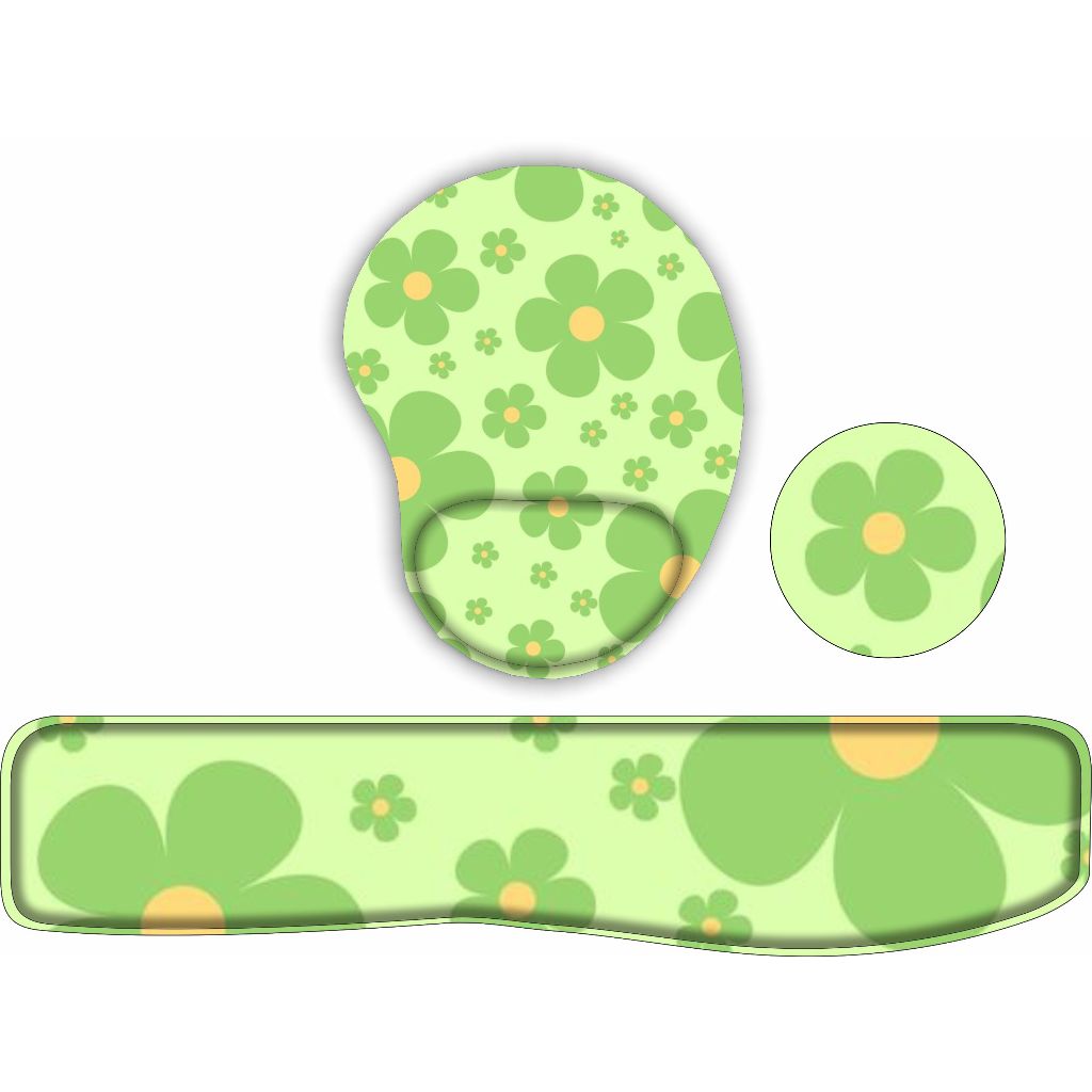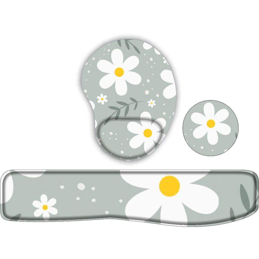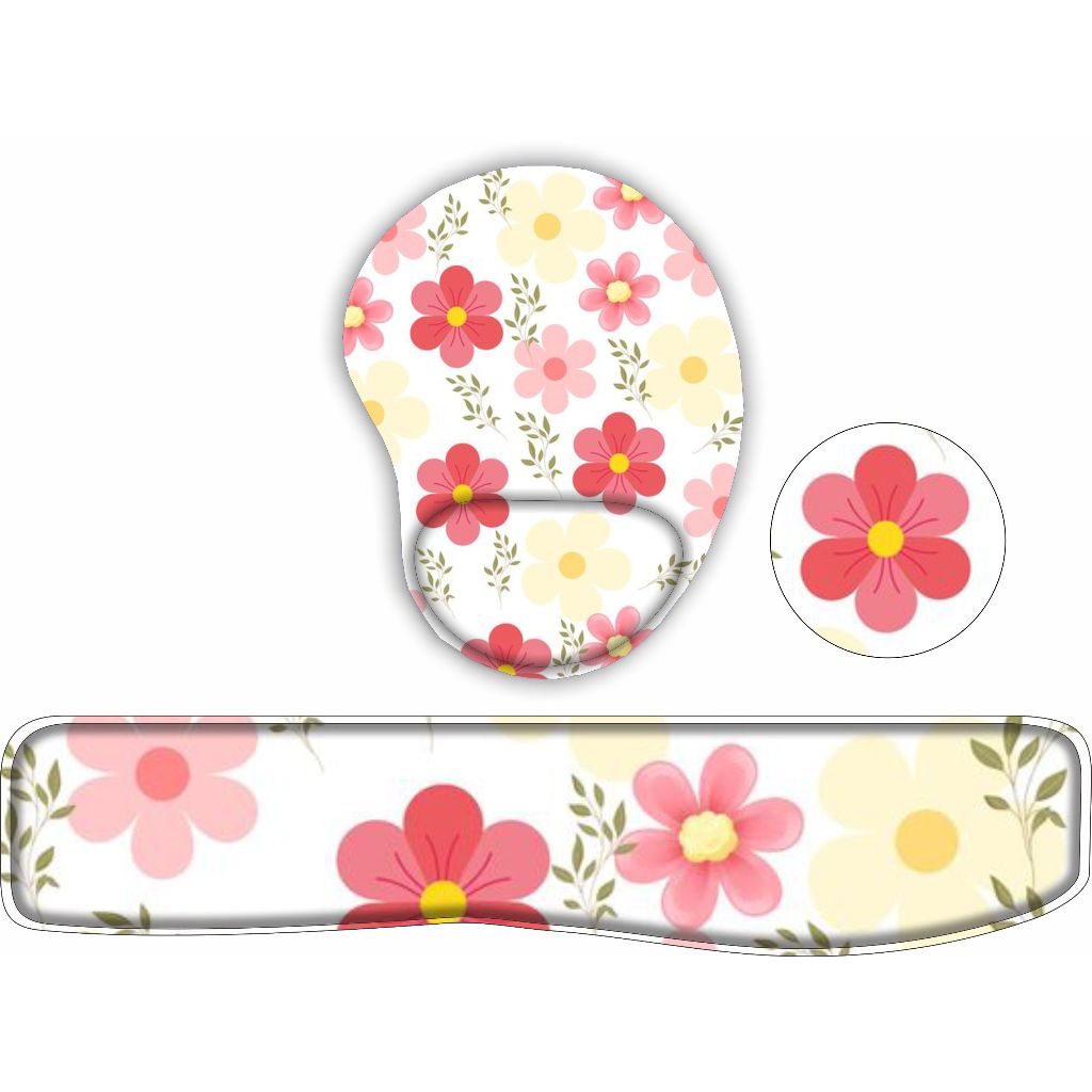 KIT Mouse Pad + Apoio de teclado + porta copo Flores Fofas