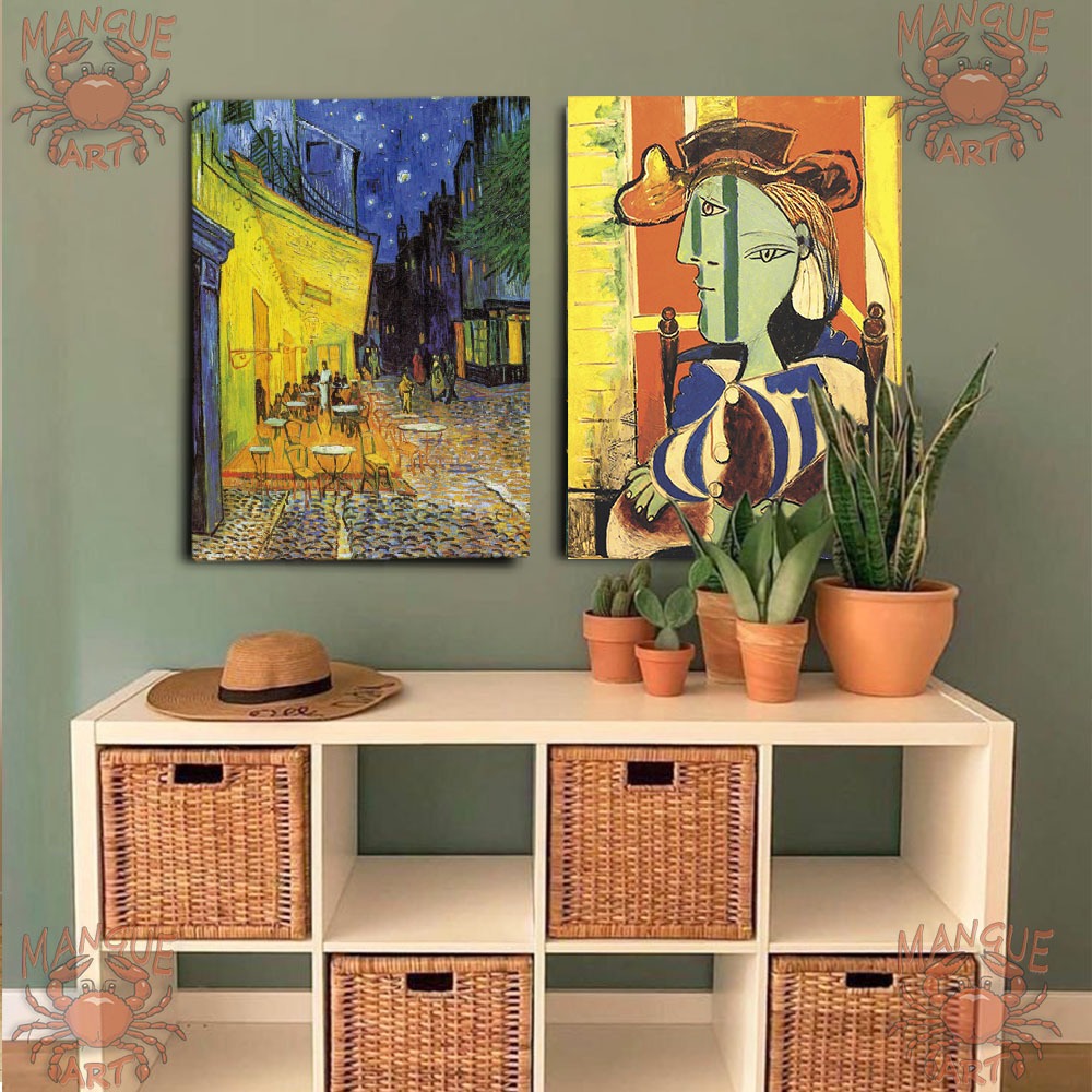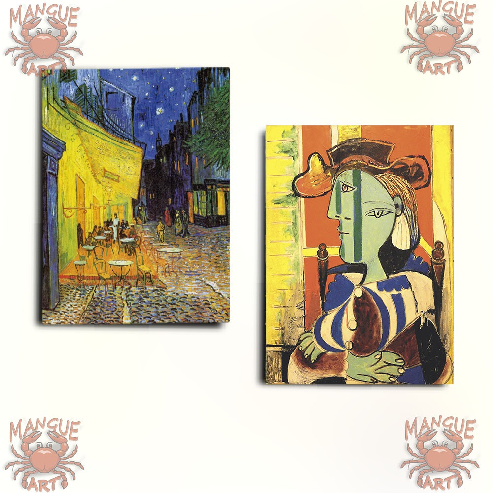 Kit Quadros decorativos tela acetinada, obra de Pablo Picasso e Van Gogh. arte classica impressionismo e cubismo.