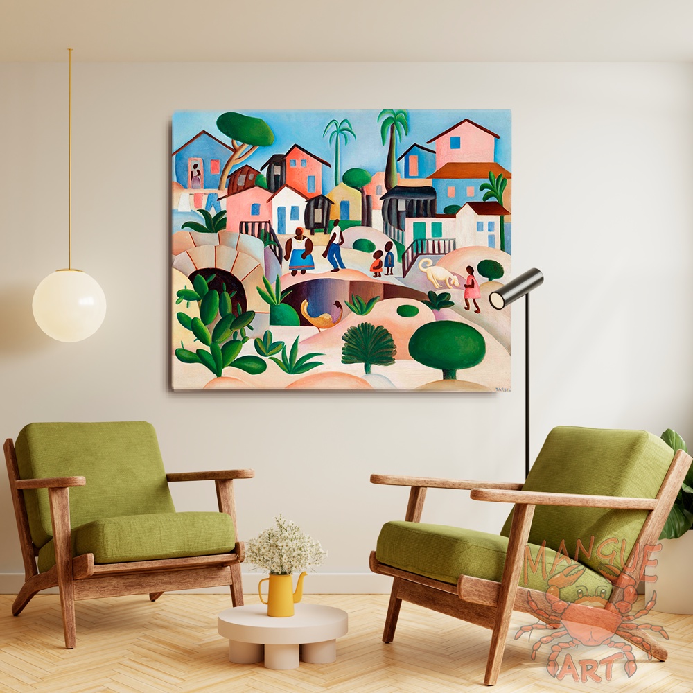 Quadro Tarsila do Amaral , Morro da favela. arte moderna em tela acetinada. Pronto para pendurar.