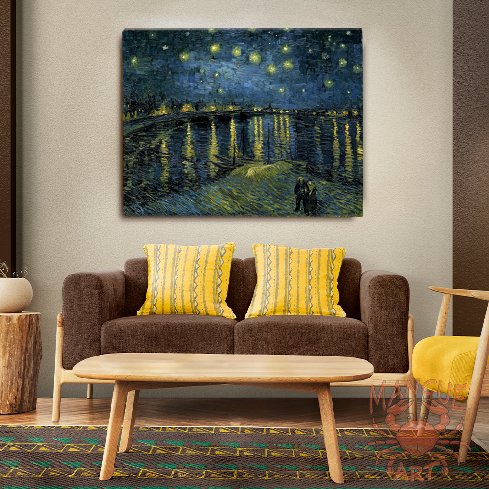 Quadro decorativos Van Gogh Noite estrelada Sobre Ródano. arte classica impressionista em tela acetinada.