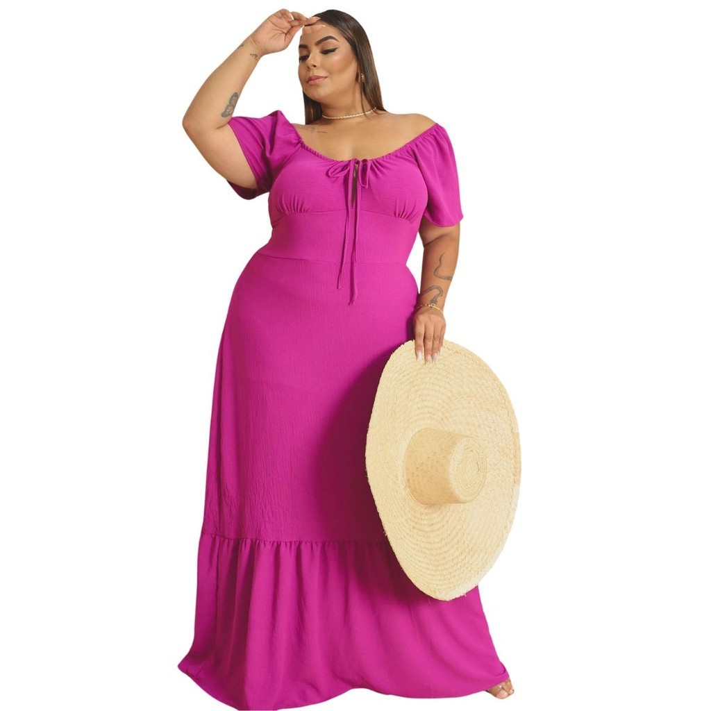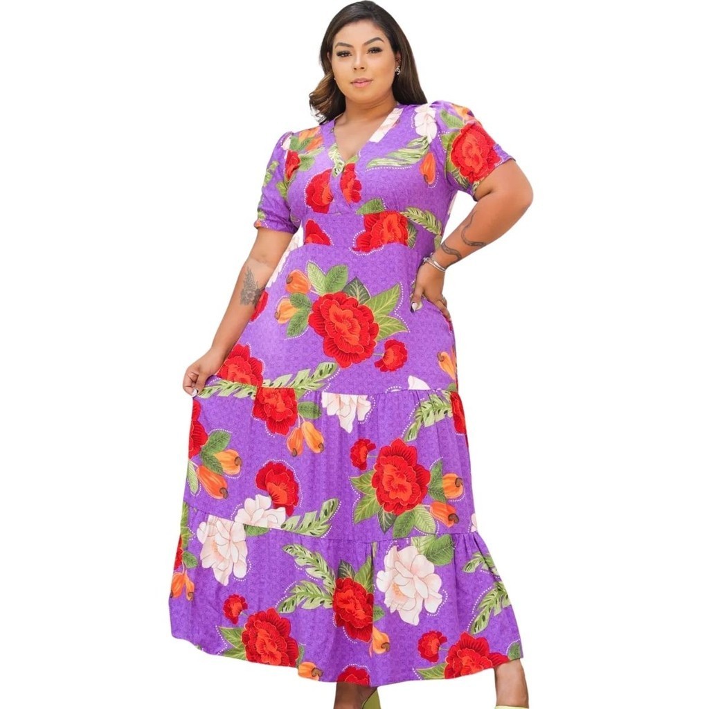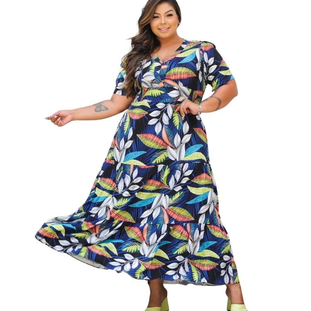 Vestido Longo Plus Size Veste 50 Exg Chic Estampado Moda
