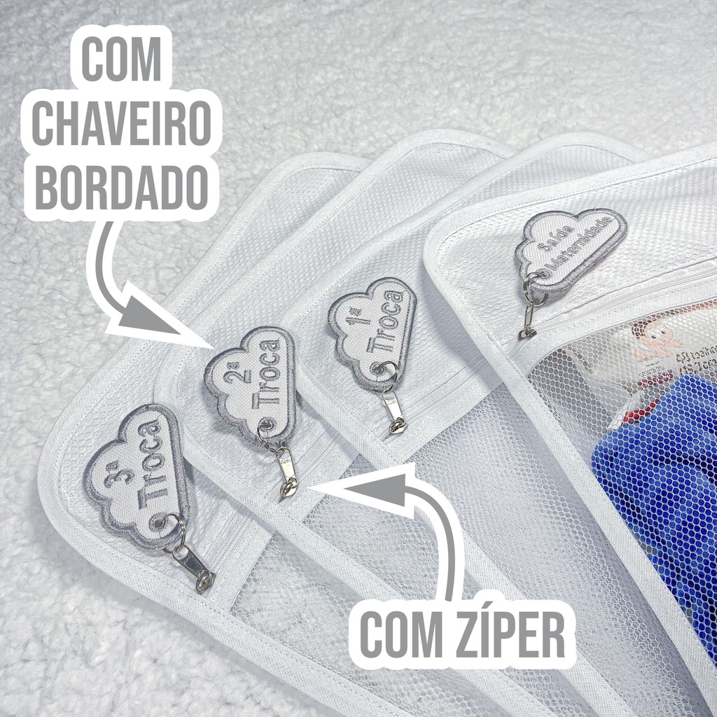 Kit 6 Saquinhos Maternidade Multiuso Saco Organizador Nécessaire Envelope Com Zíper com Tag Bordado