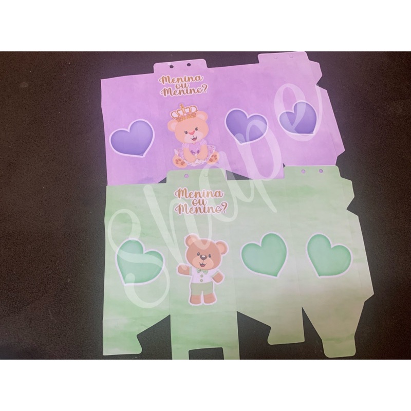 Kit 10 caixas Milk personalizadas Cha revelação Ursinho Verde lilas
