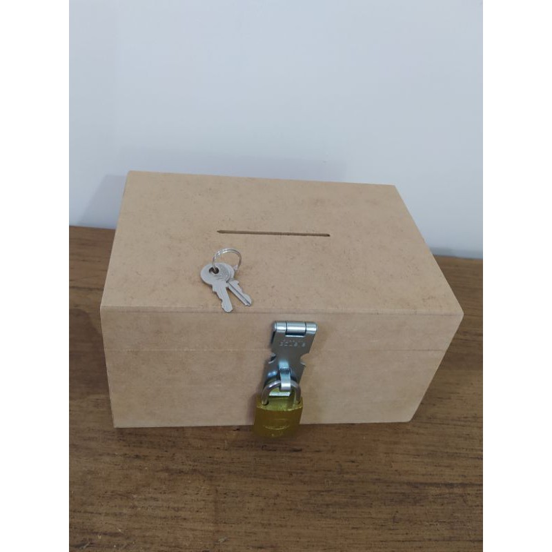 Caixa Cofre Cofrinho em MDF cru Com Cadeado
