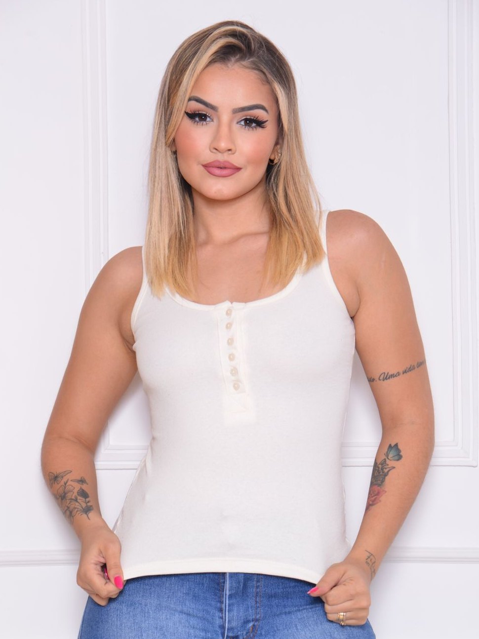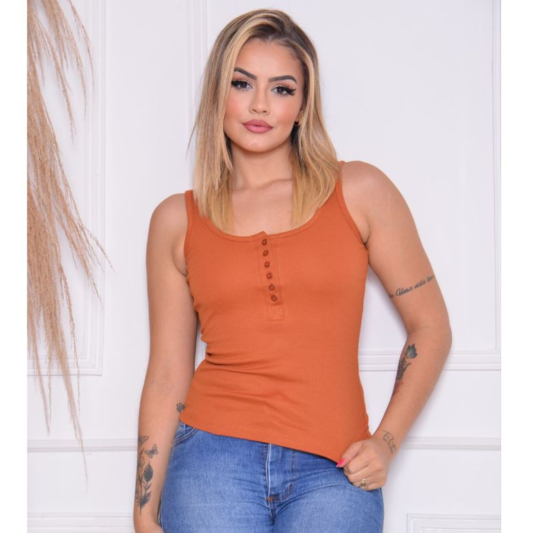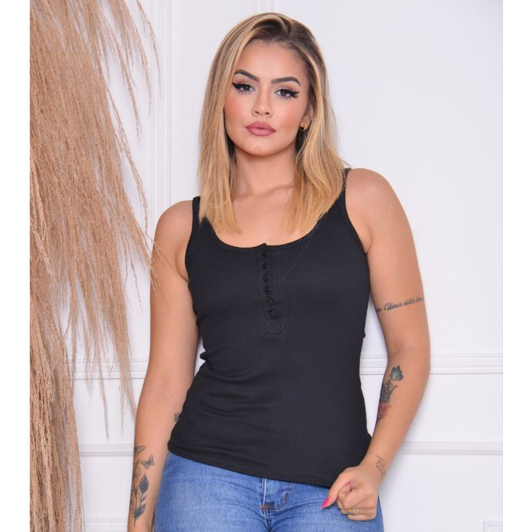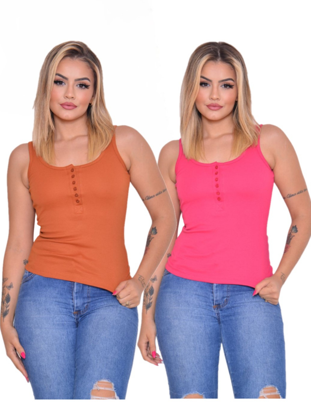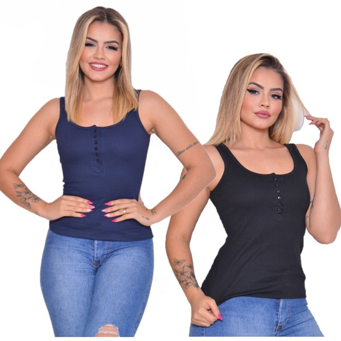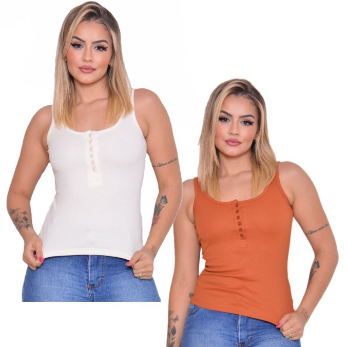 Kit Com 2 Blusas Botão Canelada De Algodão Os Botões Abrem