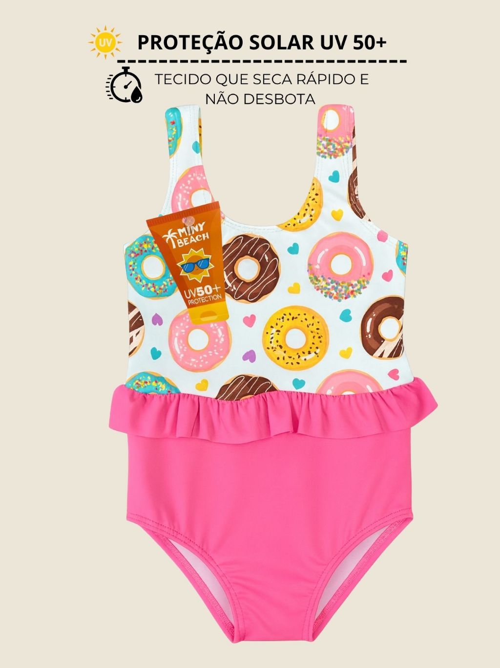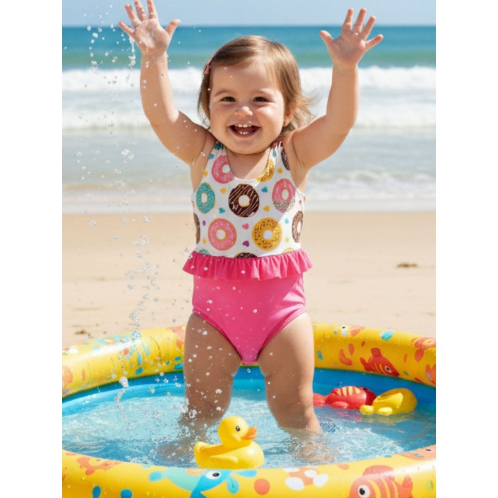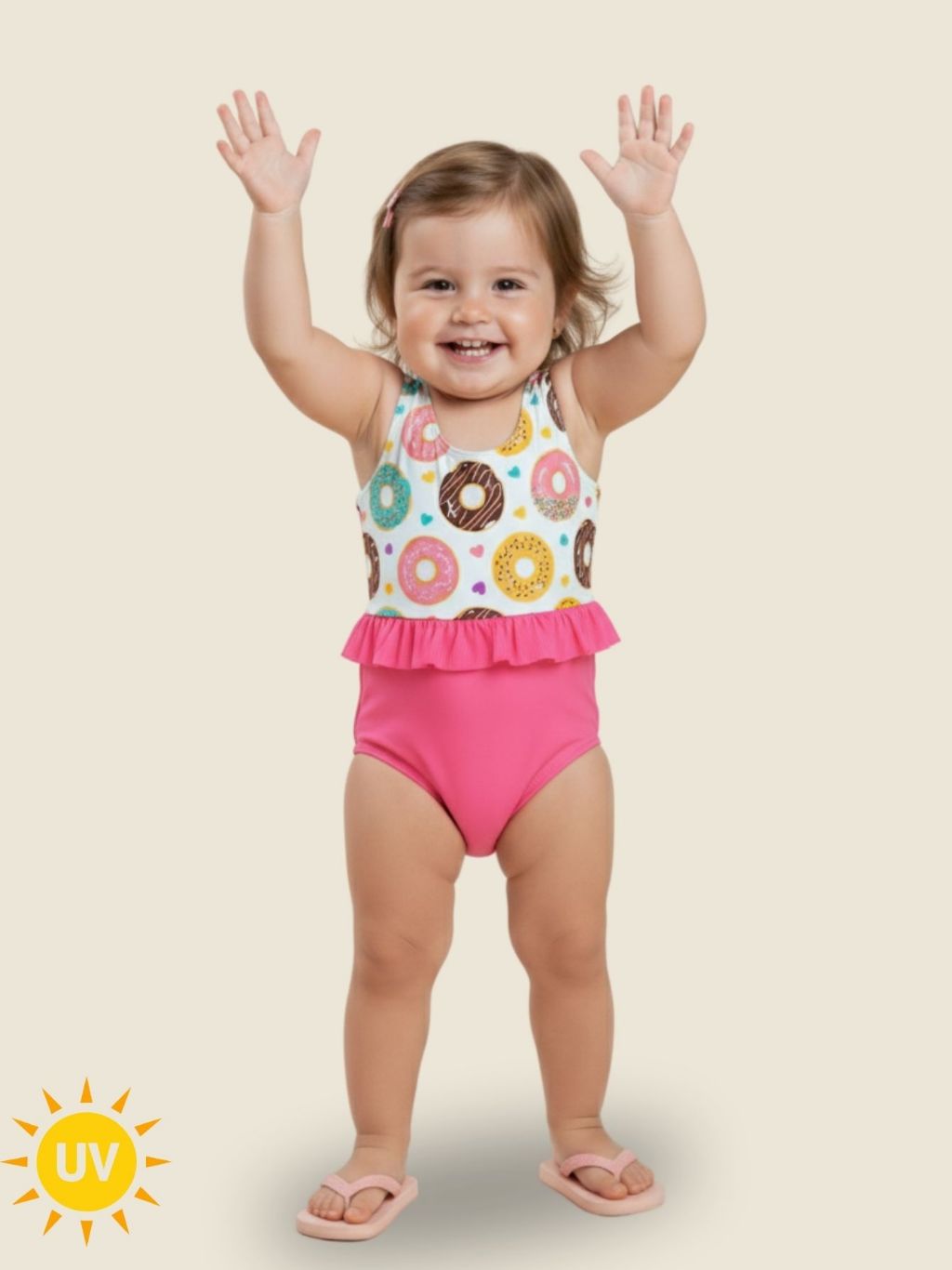 Roupa de Praia Banho Maio Bebê Menina Proteção Solar UV50+ Verão Calor Confortável Seca Rápido Donuts