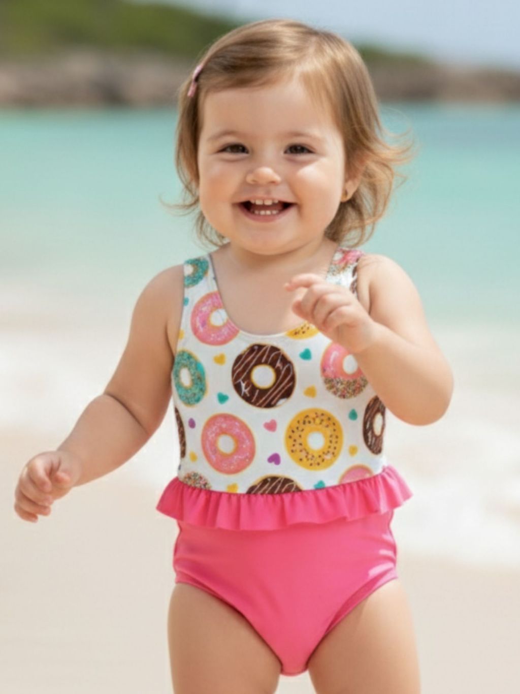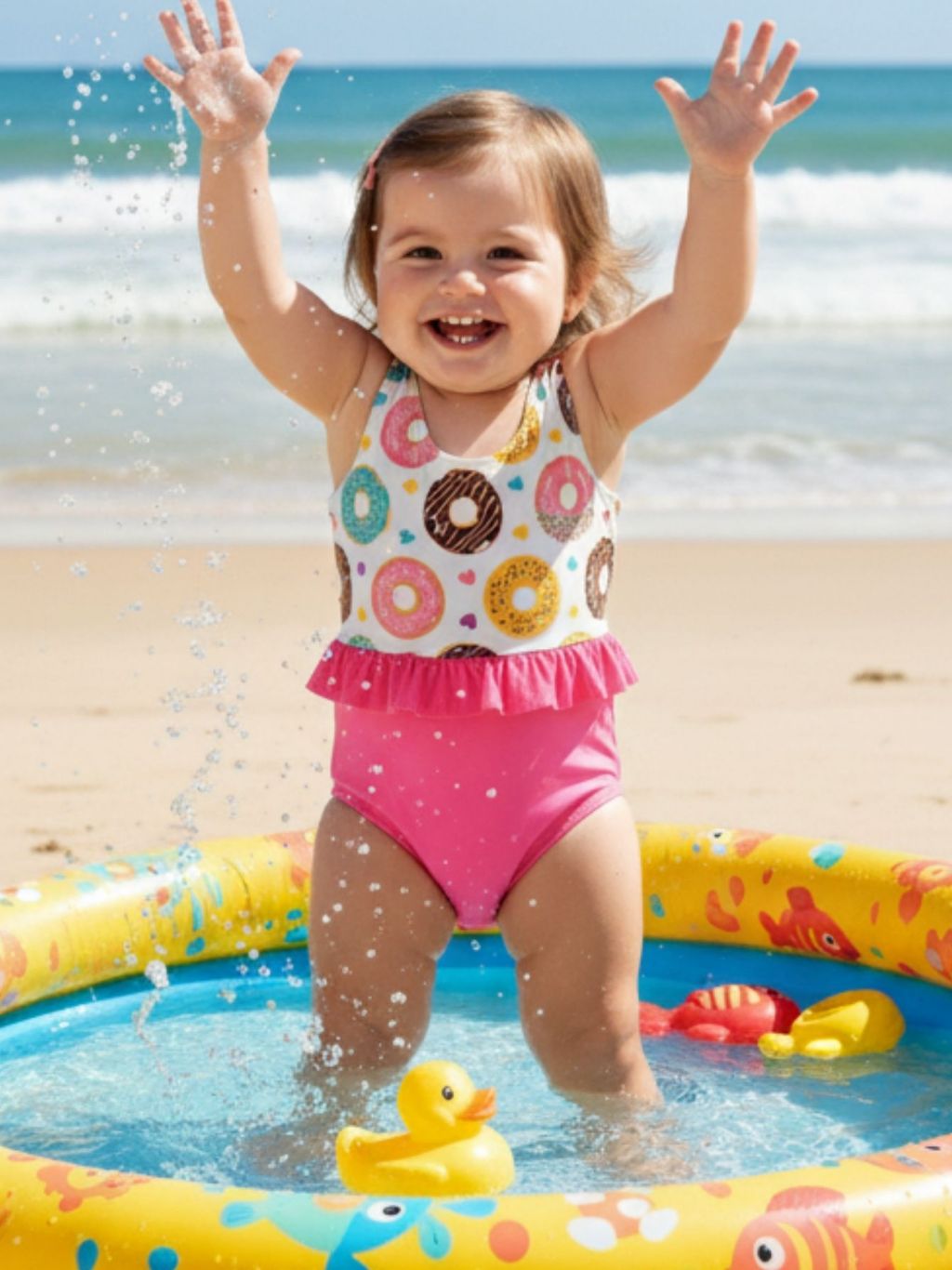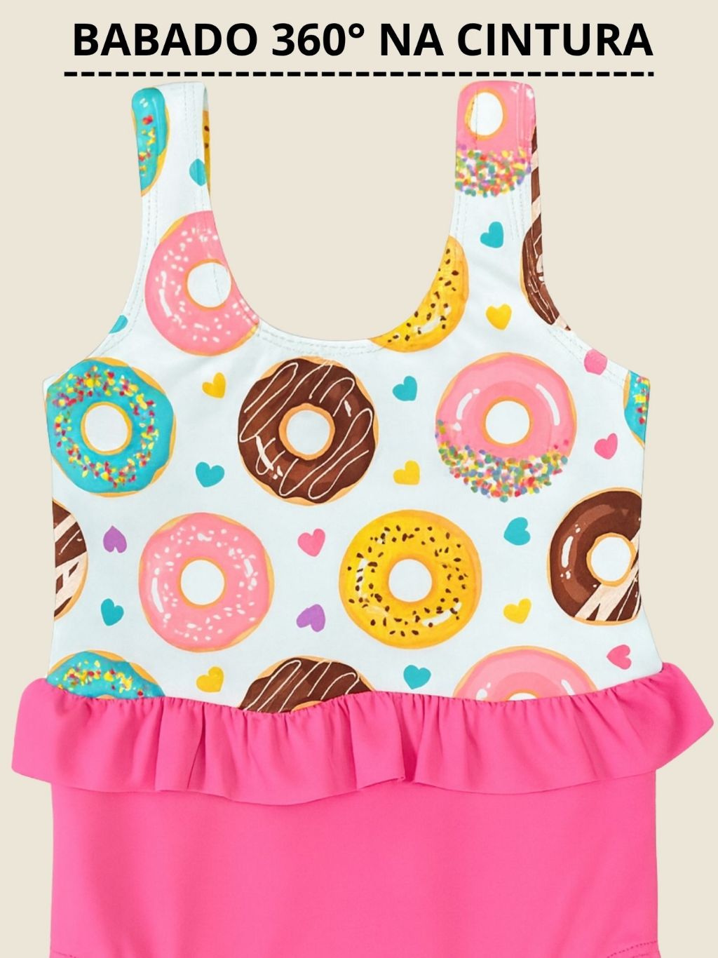Roupa de Praia Banho Maio Bebê Menina Proteção Solar UV50+ Verão Calor Confortável Seca Rápido Donuts