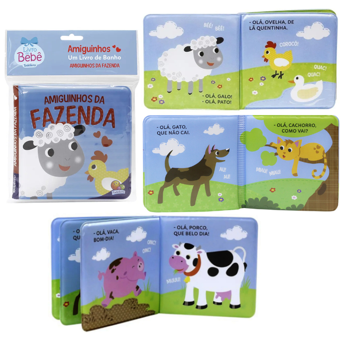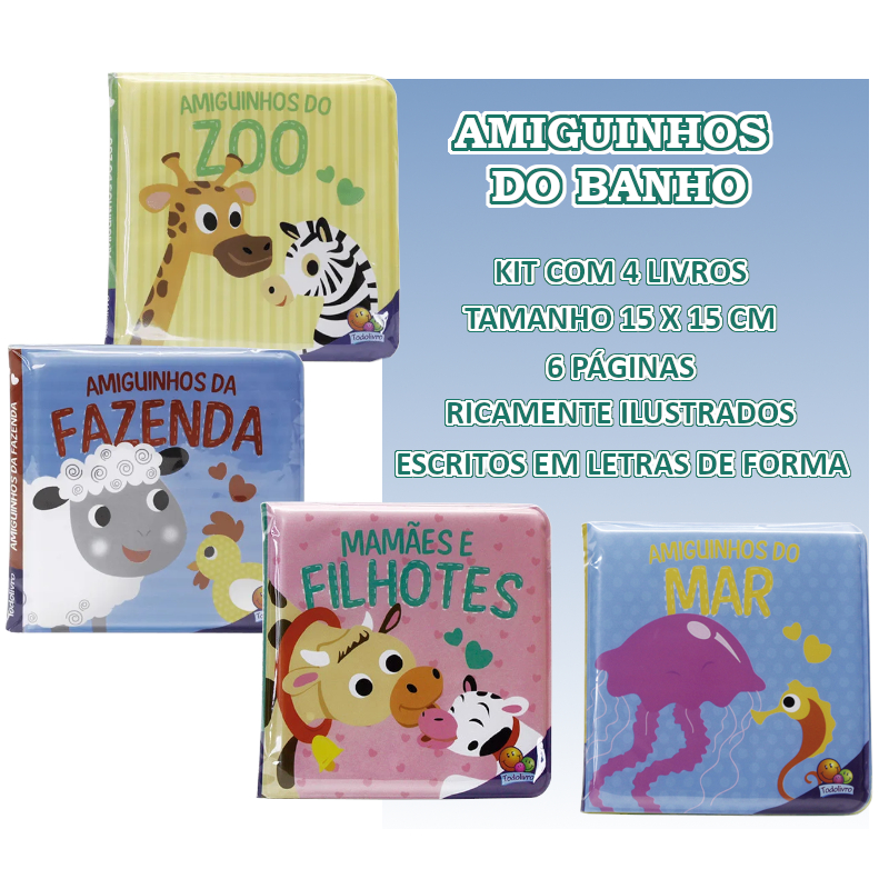 Livro Infantil - AMIGUINHOS DO BANHO - Kit Com 4 Livros - Tamanho 15 X 15 Cm - ideal para seu bebê!