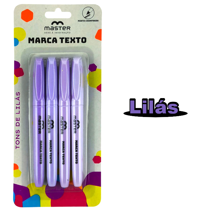 Marca Texto - Blister com 4 Cores - Lilás, Neon ou Rosa