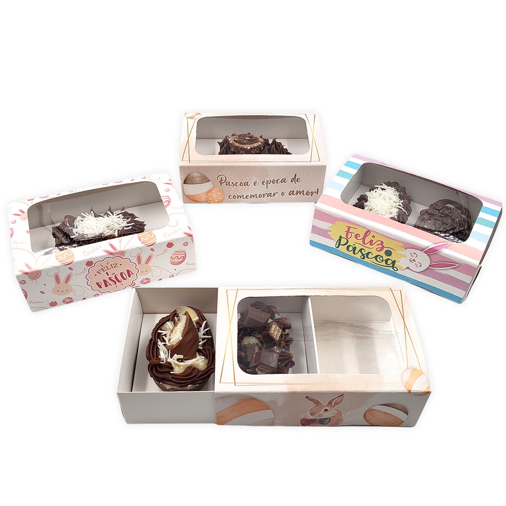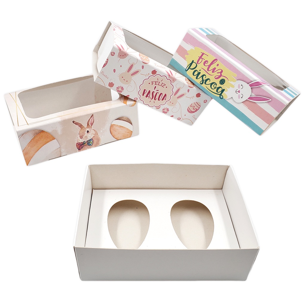 Caixa Para Ovo De Colher (10un.) Caixa Degustação Para Ovos De 50g com berço 1 ou 2 cavidades