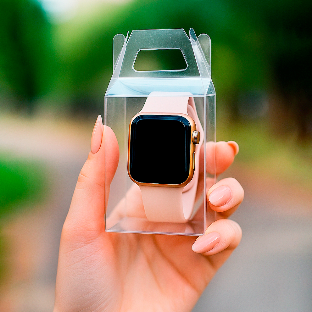 Caixa PVC para relógio digital. Embalagem maleta de acetato para lembrancinha, aniversário e brindes