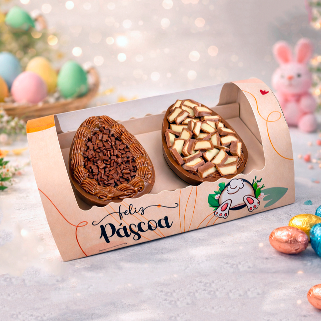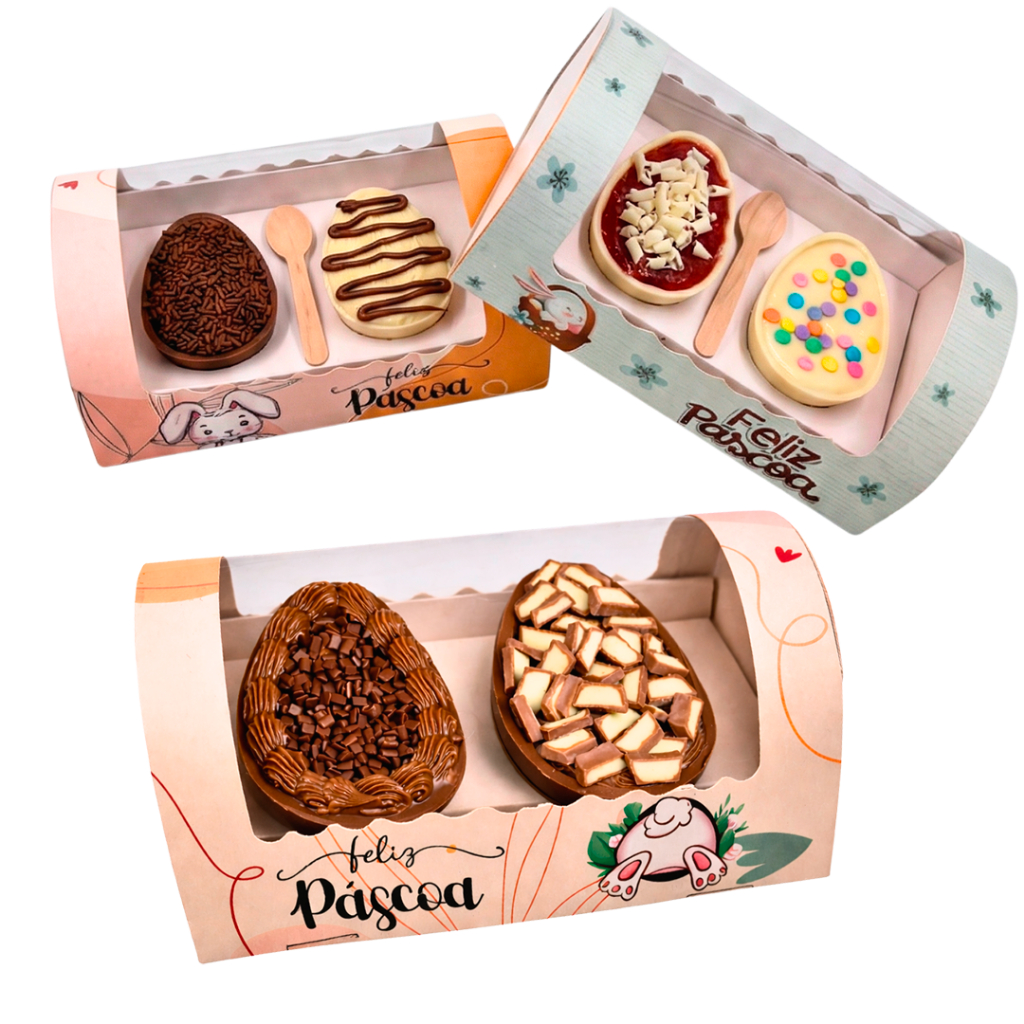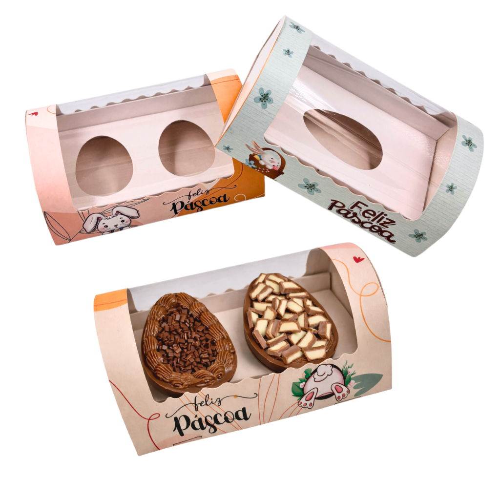10 Unidades Caixa Para Ovo De Colher Pascoa Embalagem Degustação 1 ou 2 Ovo / Cavidade de 50g