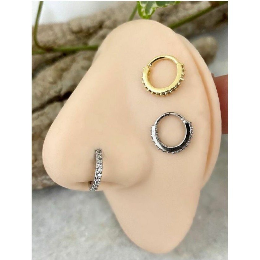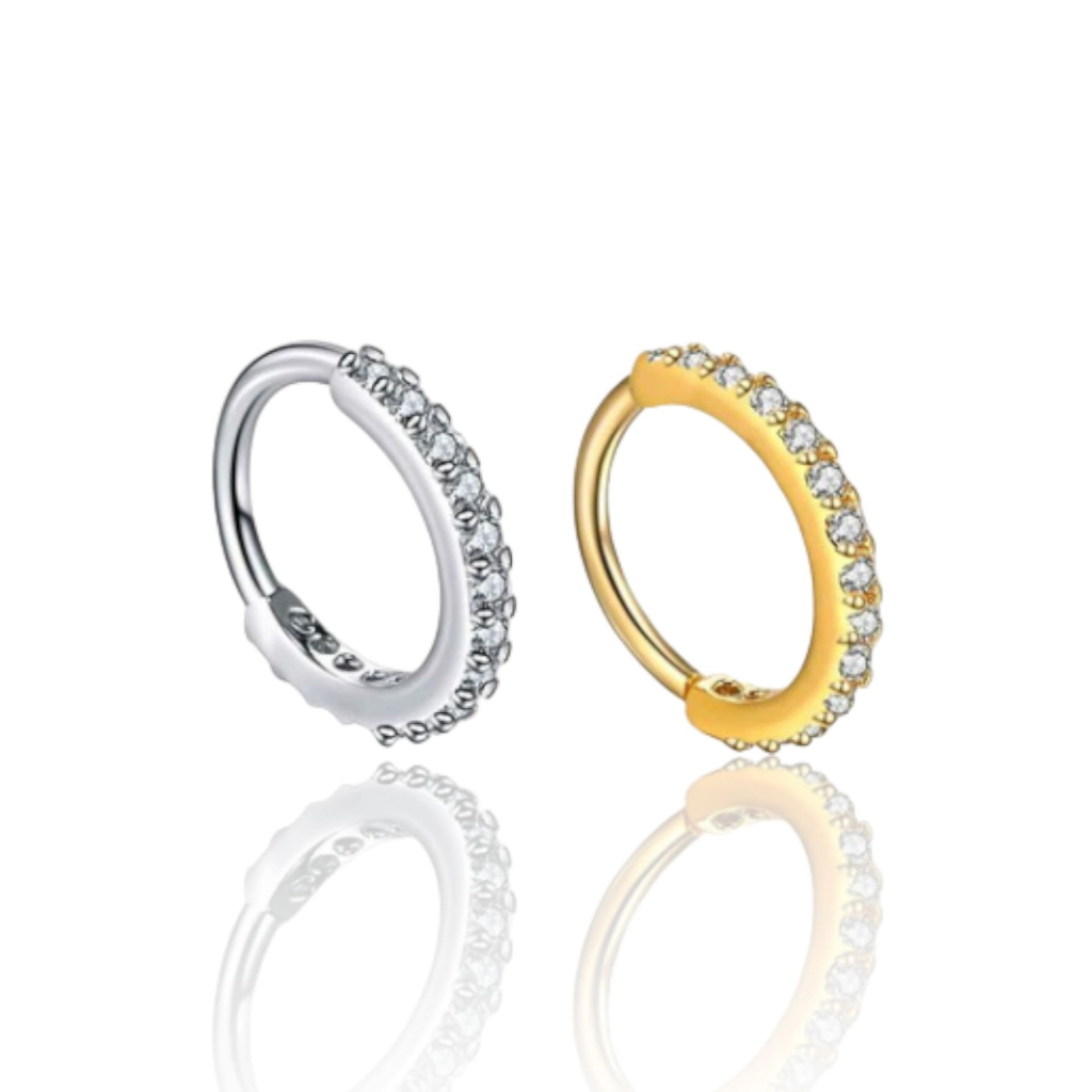 Piercing Argola Cravejada Com Pedras De Zirconia Para Nariz, Tragus ou Cartilagem