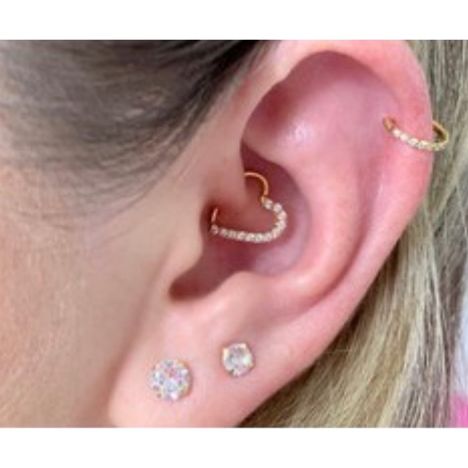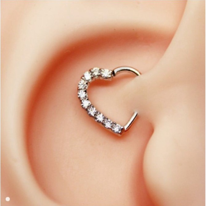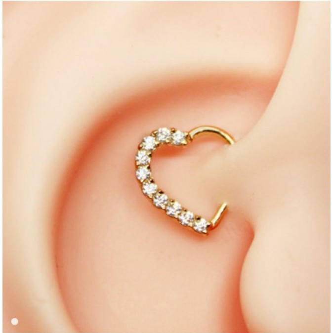 Piercing Coração Cravejado Com Zirconia Torção para Hélix, Daith e Cartilagem