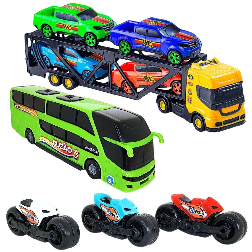 Kit Caminhão Cegonheiro Carrinhos Motinhas ônibus Miniatura Brinquedos Meninos Infantil Presente