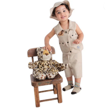 Fantasia Safari Infantil Menino Festa Luxo Bebê Camisa Shorts + Chapéu Leao Completo & Macacão