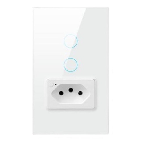 Interruptor Wifi Inteligente 2 Botões Touch Com Tomada 20A - Alexa Google Assistente Smart Life
