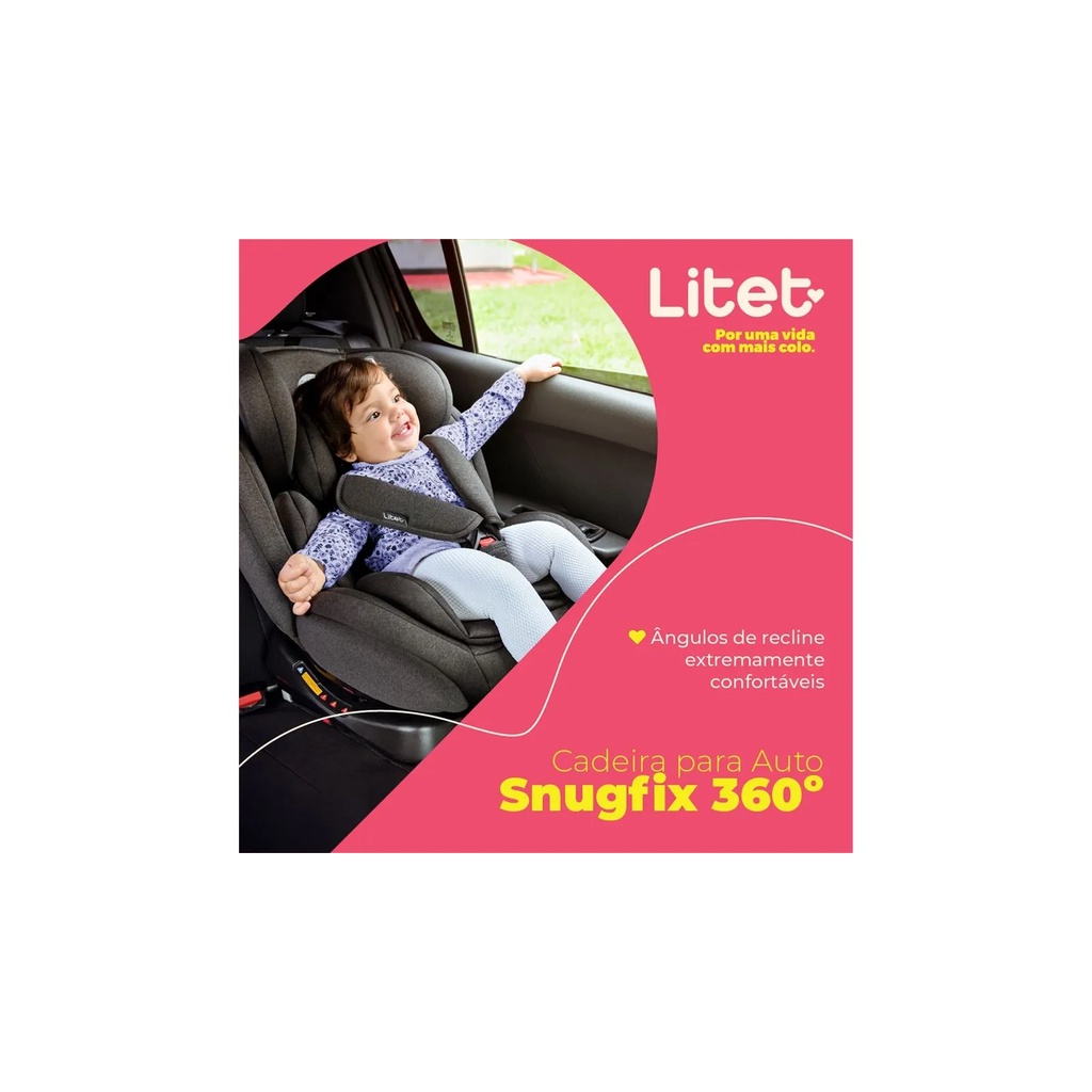 Cadeira Para Auto 0 A 36 Kg Isofix Com Rotação 360º Snugfix Preta e Cinza Litet