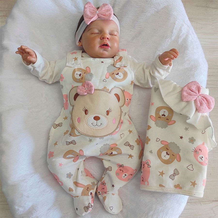 Saída de Maternidade Para Bebê Menina Kids com Bordado de Ursinha Lola Palha - 04 Peças