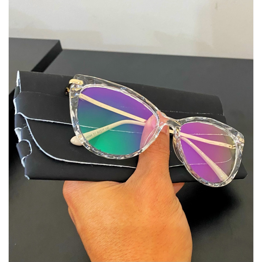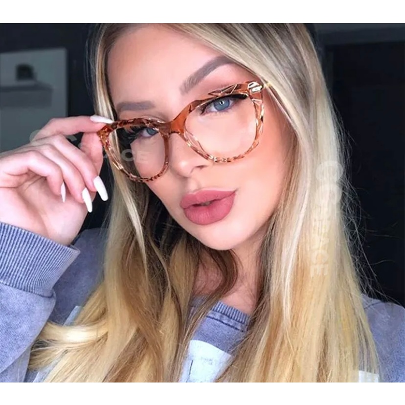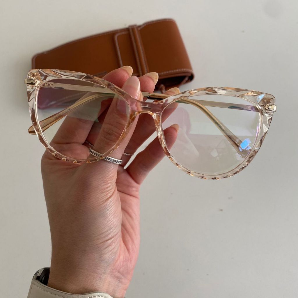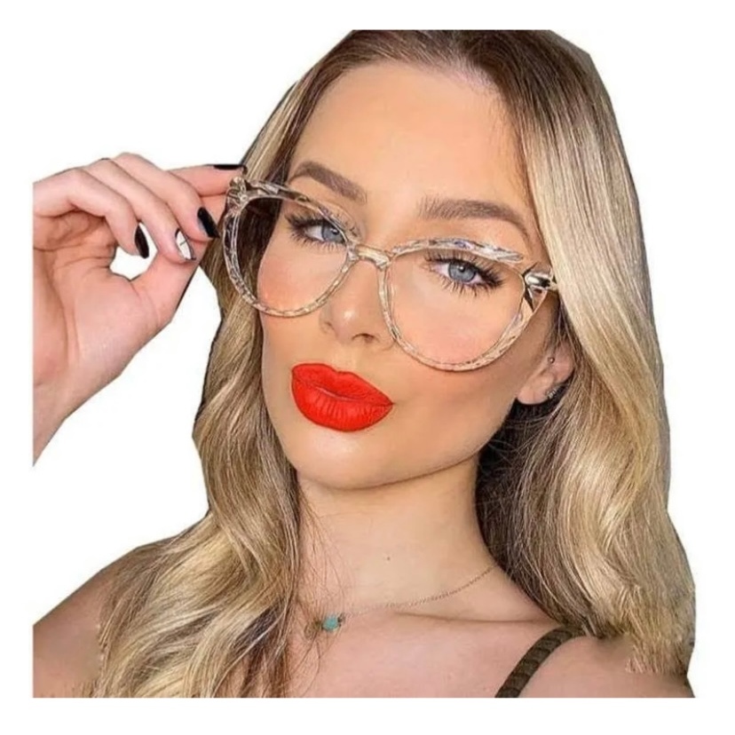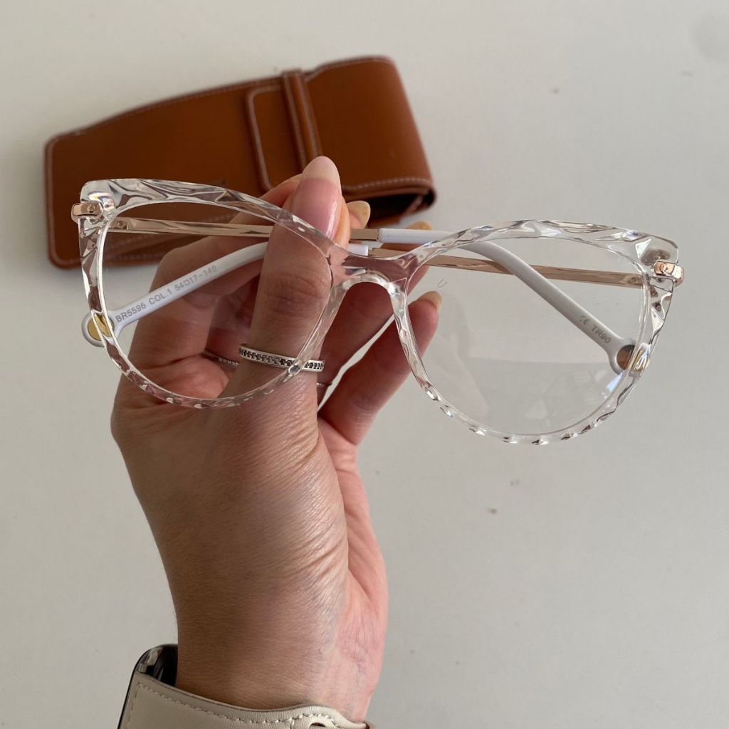 Armação De Óculos Para Grau Feminino Transparente Cristal Lapidado Com Formato Gatinho