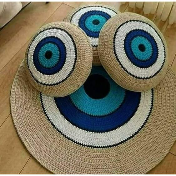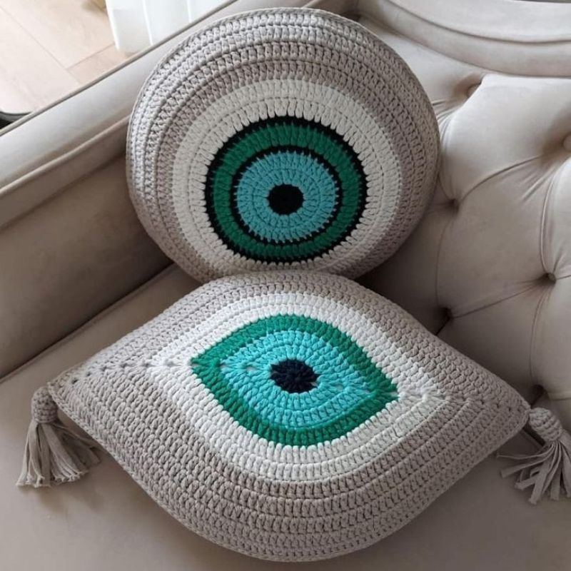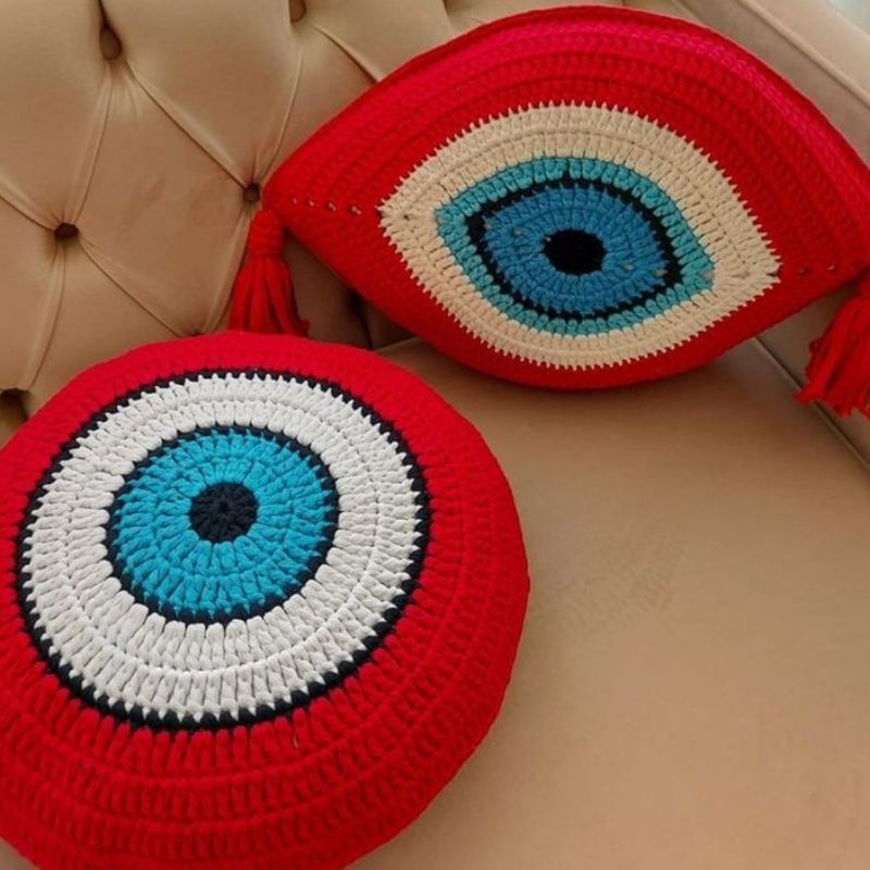 Almofada olho grego Luxo em crochê com enchimento (Leia a descrição)