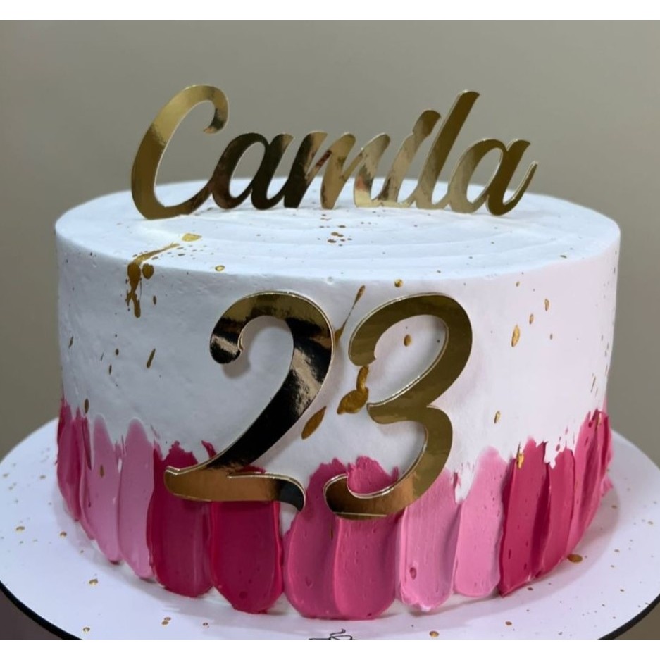 TOPO DE BOLO DOURADO NOME E IDADE TOPPER PERSONALIZADO