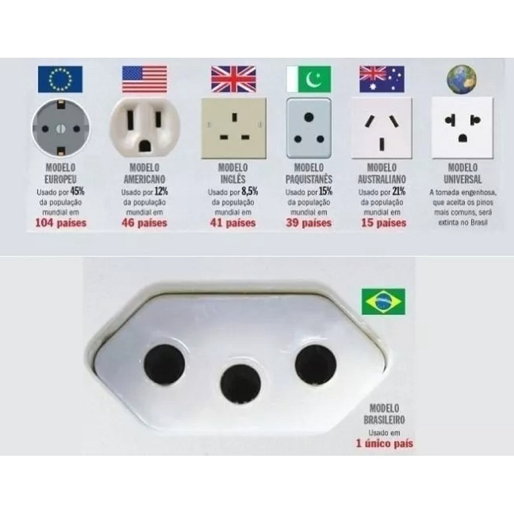Kit 2 Adaptador Universal Tomada Europeu Americano Brasil