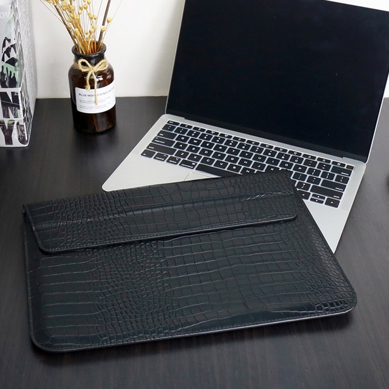 Bolsa Para Laptop De Couro artificial Flexível Com Suporte/De Mão Impermeável Macbook air pro 11/13/14/15/16 Polegadas