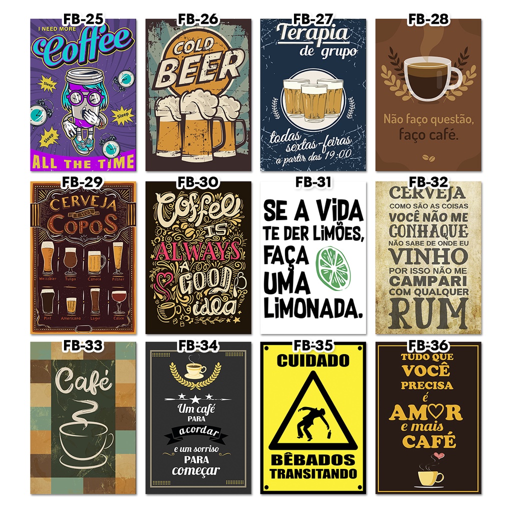 Kit 10 Quadros Placas Decorativas Bar Cerveja Área Gourmet