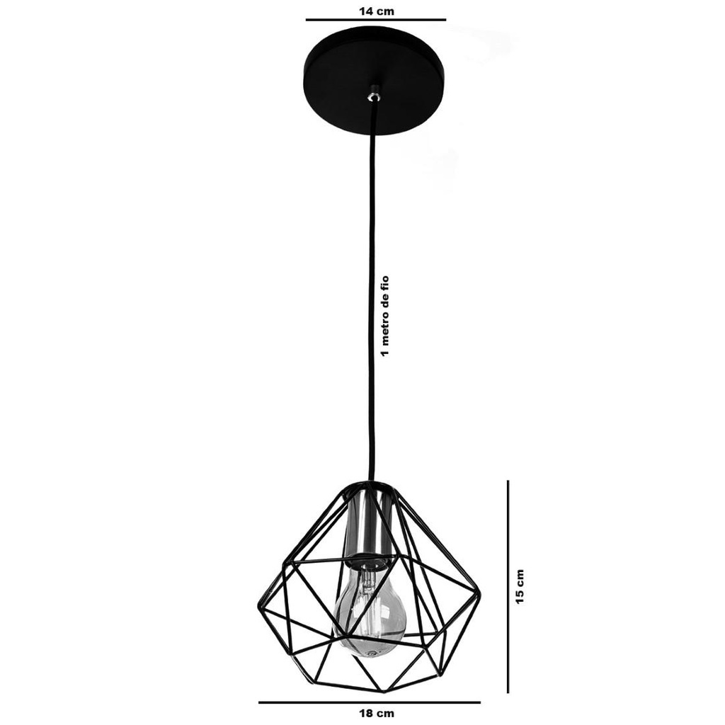 Lustre Pendente Luminaria Diamante Aramado Cromado