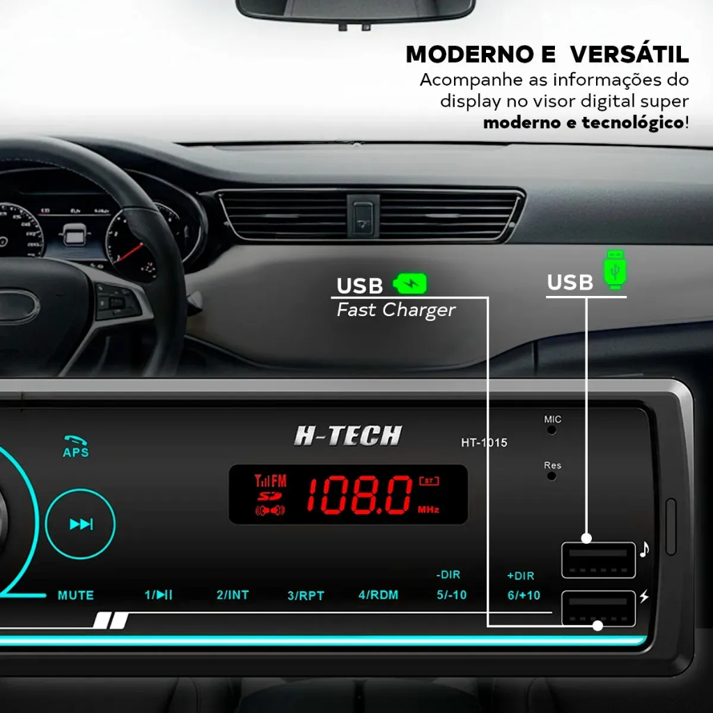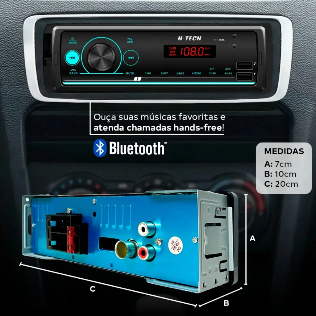 Rádio Automotivo Bluetooth Som Mp3 Player 1 Din Usb Sd Fm Auxiliar Seleção Por Pasta