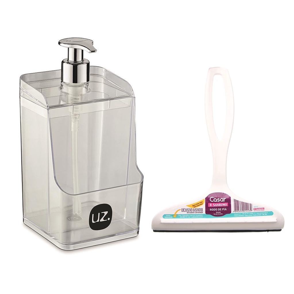 Kit Rodinho de Pia e ou Porta Detergente Acrílico Dispenser Super Lindo e Pratico Quadrado - Uz