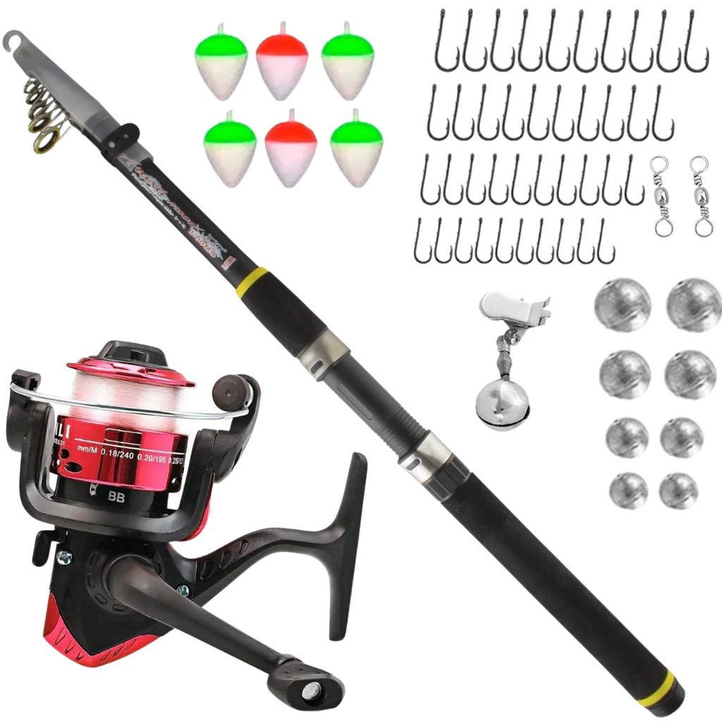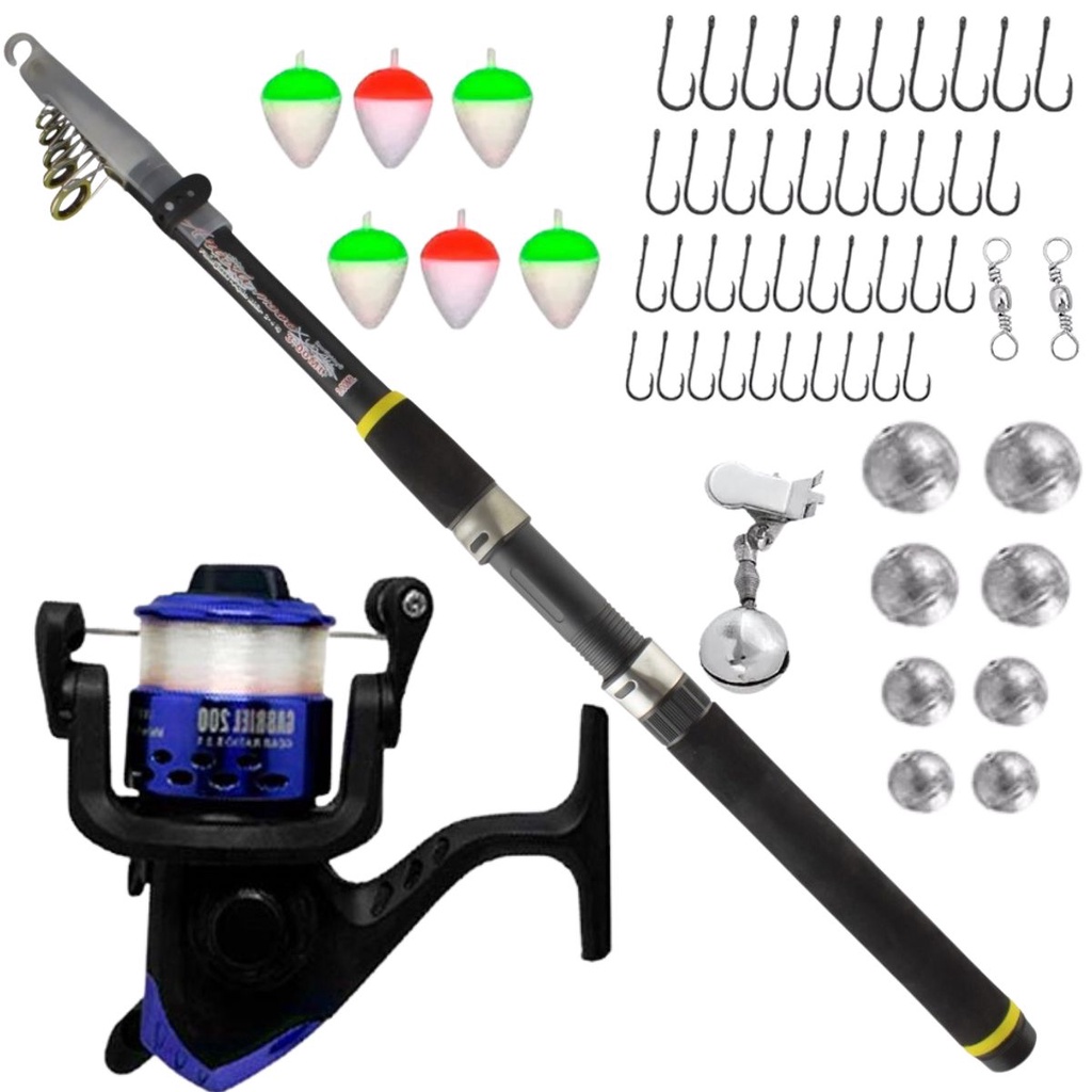Vara De Pesca Telescopica Completa 2,70m Molinete E Acessórios
