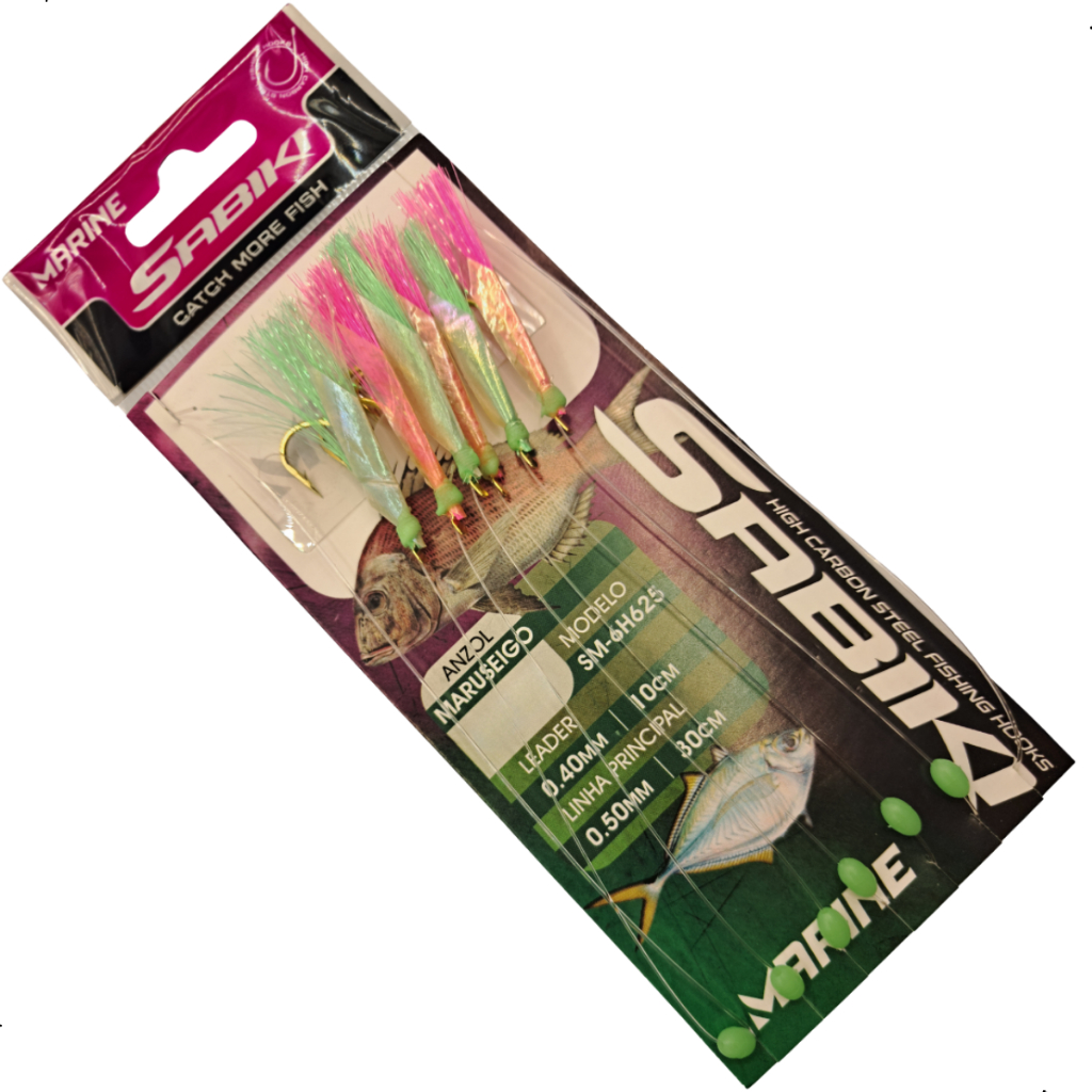 Sabiki Marine Sports Verde-Rosa SM-6H625 - Diversos Tamanhos