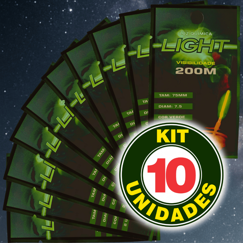 Kit 10pçs Star Light 200m - 75mm Cart. 1pç Iluminador Luz Química Verde Fluorescente Pesca Pescaria Noturna Boia Maruri