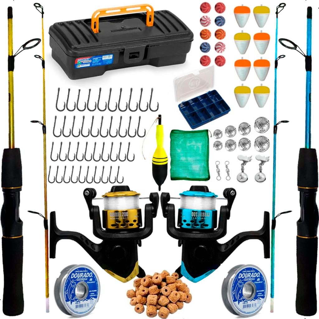 Kit De Pesca Completo Barato 2 Molinete 2 Vara 10kg com Itens