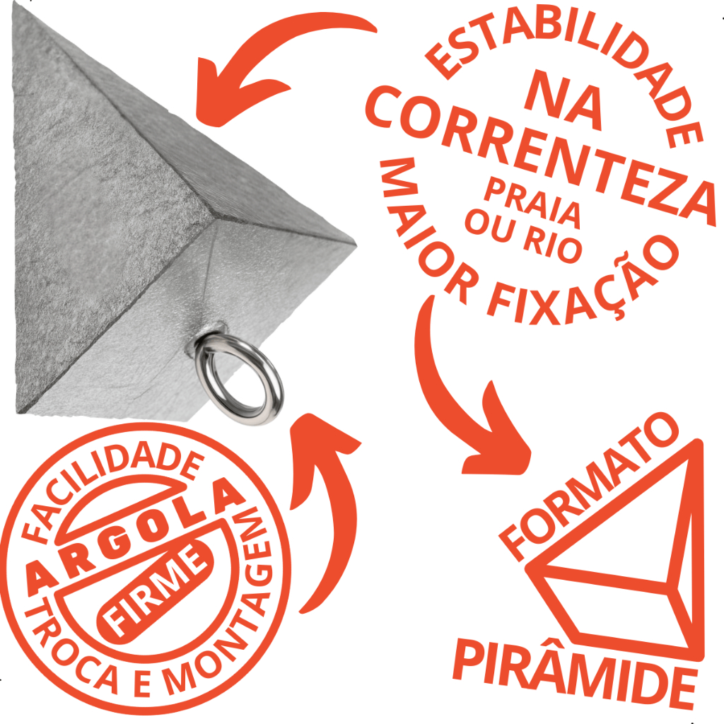 Chumbada Pirâmide Com Argola Para Pesca Mar Rio Surfcasting Escolha Tamanho Cartela