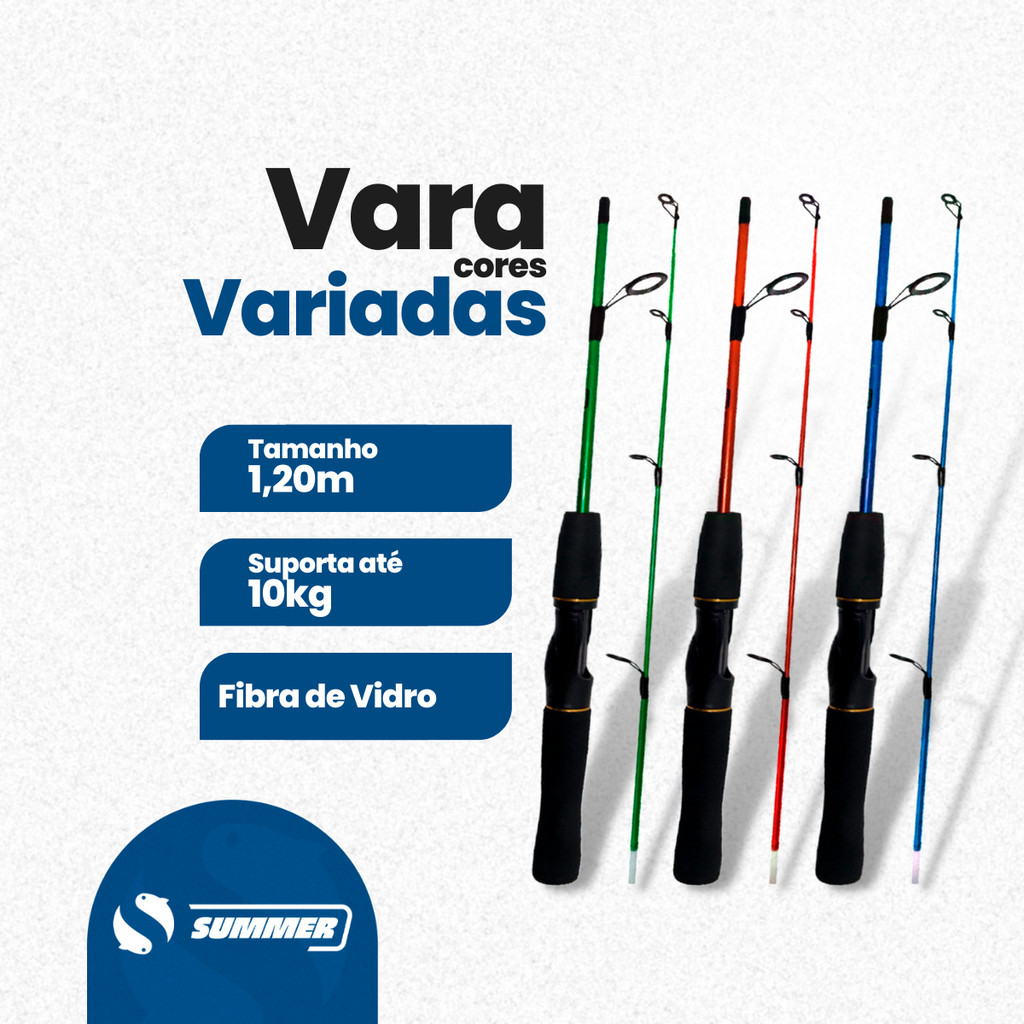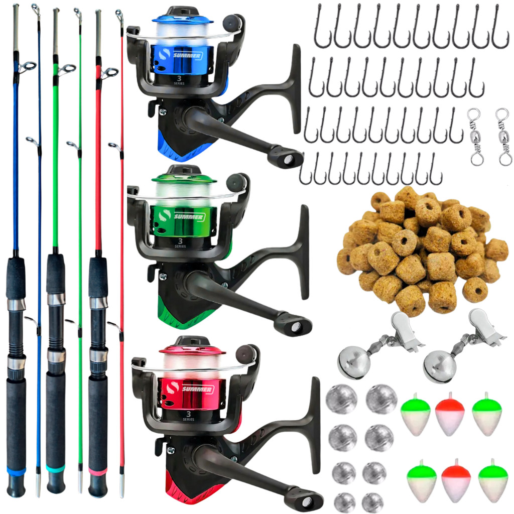 Kit de Pesca Completo 3 Varas 1,20m 10kg 3 Molinetes e Acessórios