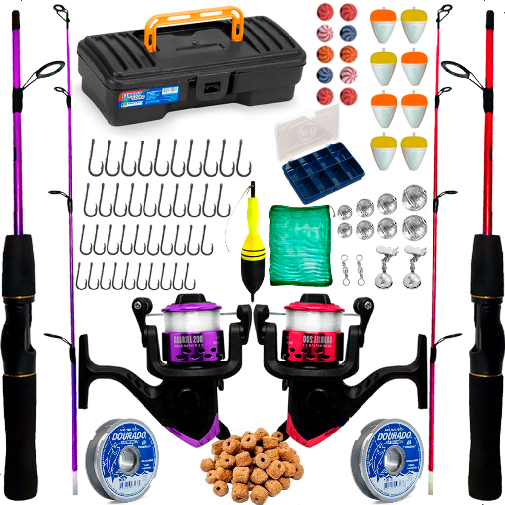 Kit De Pesca Completo Barato 2 Molinete 2 Vara 6kg Com Itens
