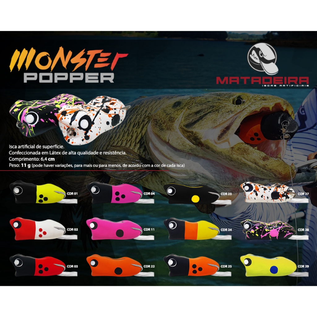 Isca Artificial Frog Monster Popper Matadeira Sapinho Para Traíra Black Bass e Peixes Agressivos 3D Sapo Super Leve Real